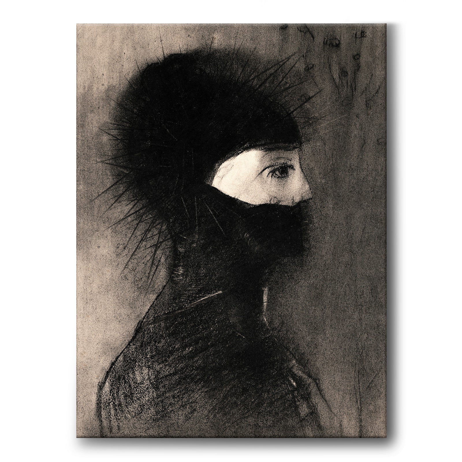 Canvas with the painting Armor by the French artist Odilon Redon from 1891. The motif shows a woman in black armor.