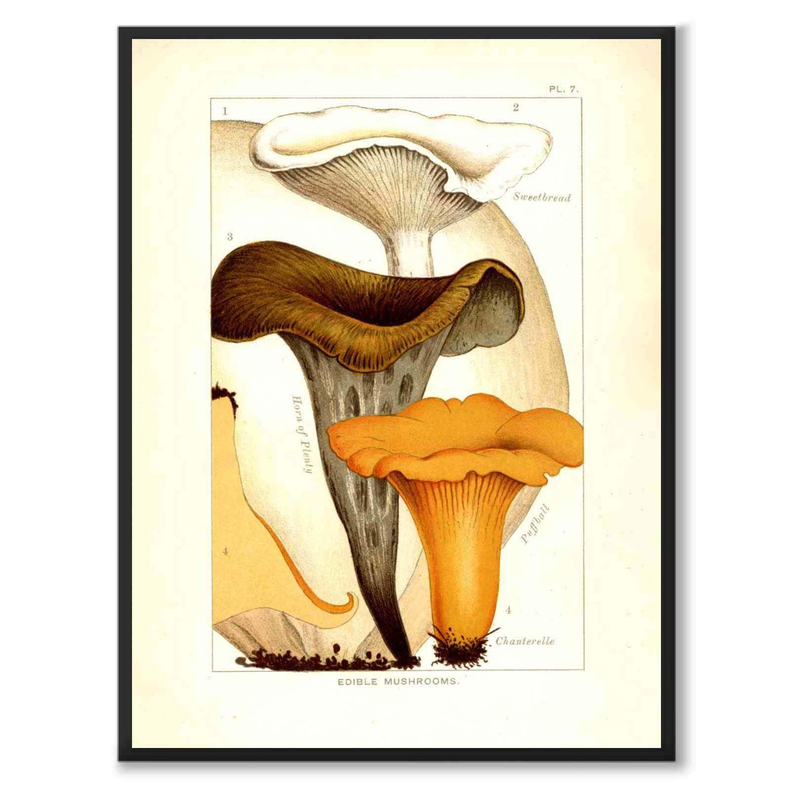 Poster featuring a beautiful, classic illustration from the book Sweden's Edible and Poisonous Mushrooms which was published in series between the years 1860-1866 by Elias Fries.
