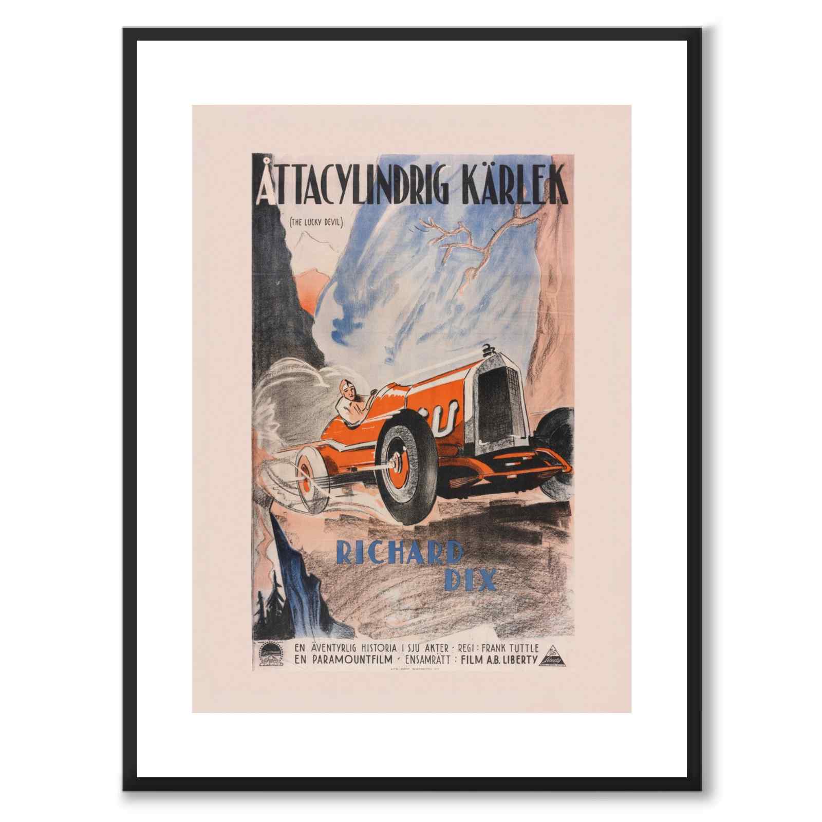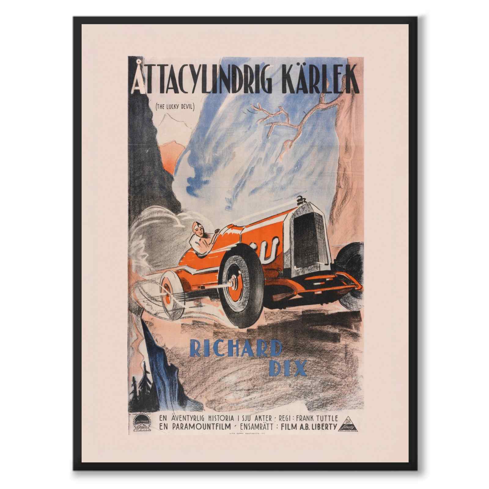 Poster with a retro movie poster from 1925. The poster is from the movie Atttacylindrig kärle which was released the same year. As we see on the poster, the film is "an adventure story in seven acts ", directed by Frank Tuttle.