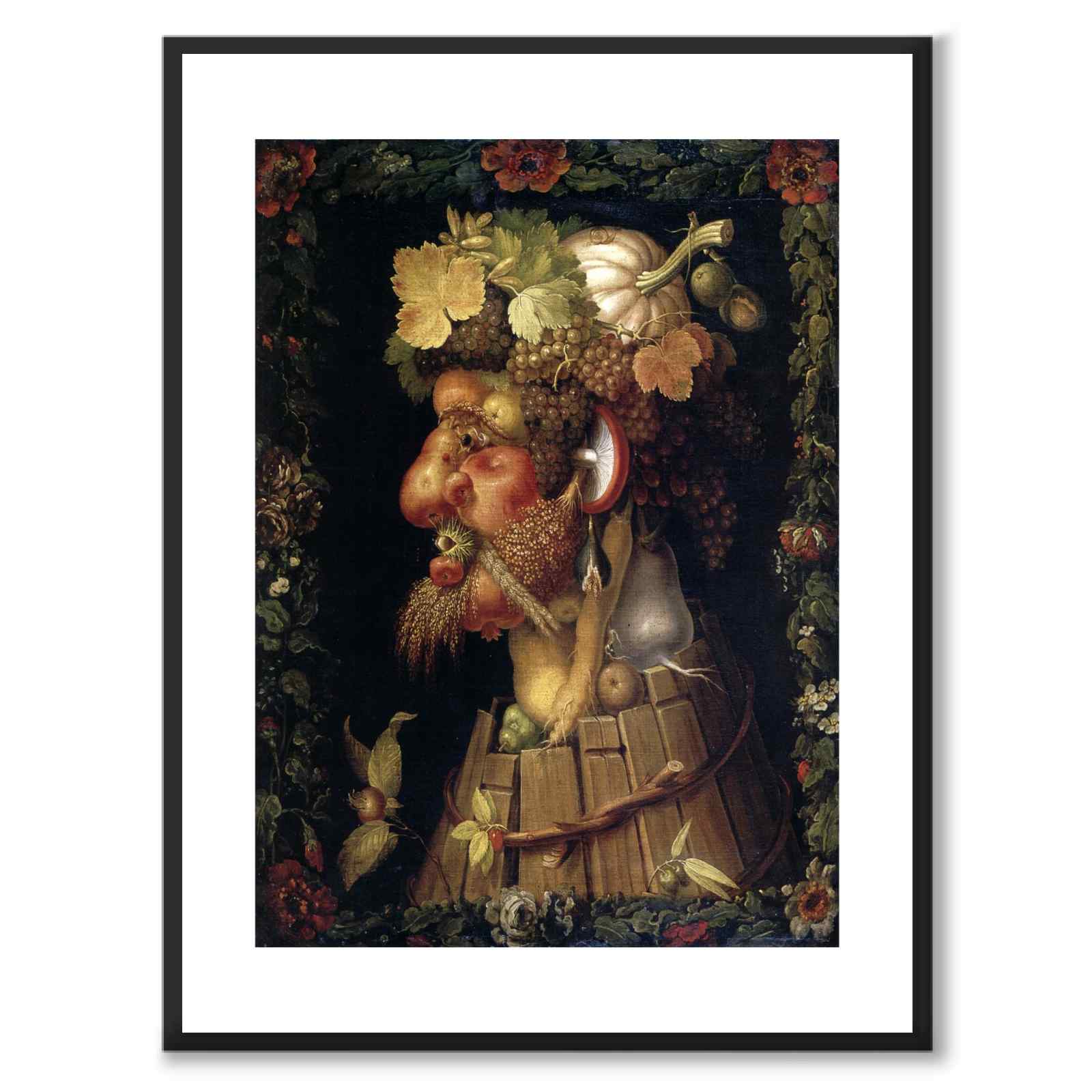 Poster with the painting "Autumn" by the Italian Renaissance painter Giuseppe Arcimboldo (1527-1593), who is known for his imaginative portraits in which he uses objects such as fruit, flowers and books to recreate faces.