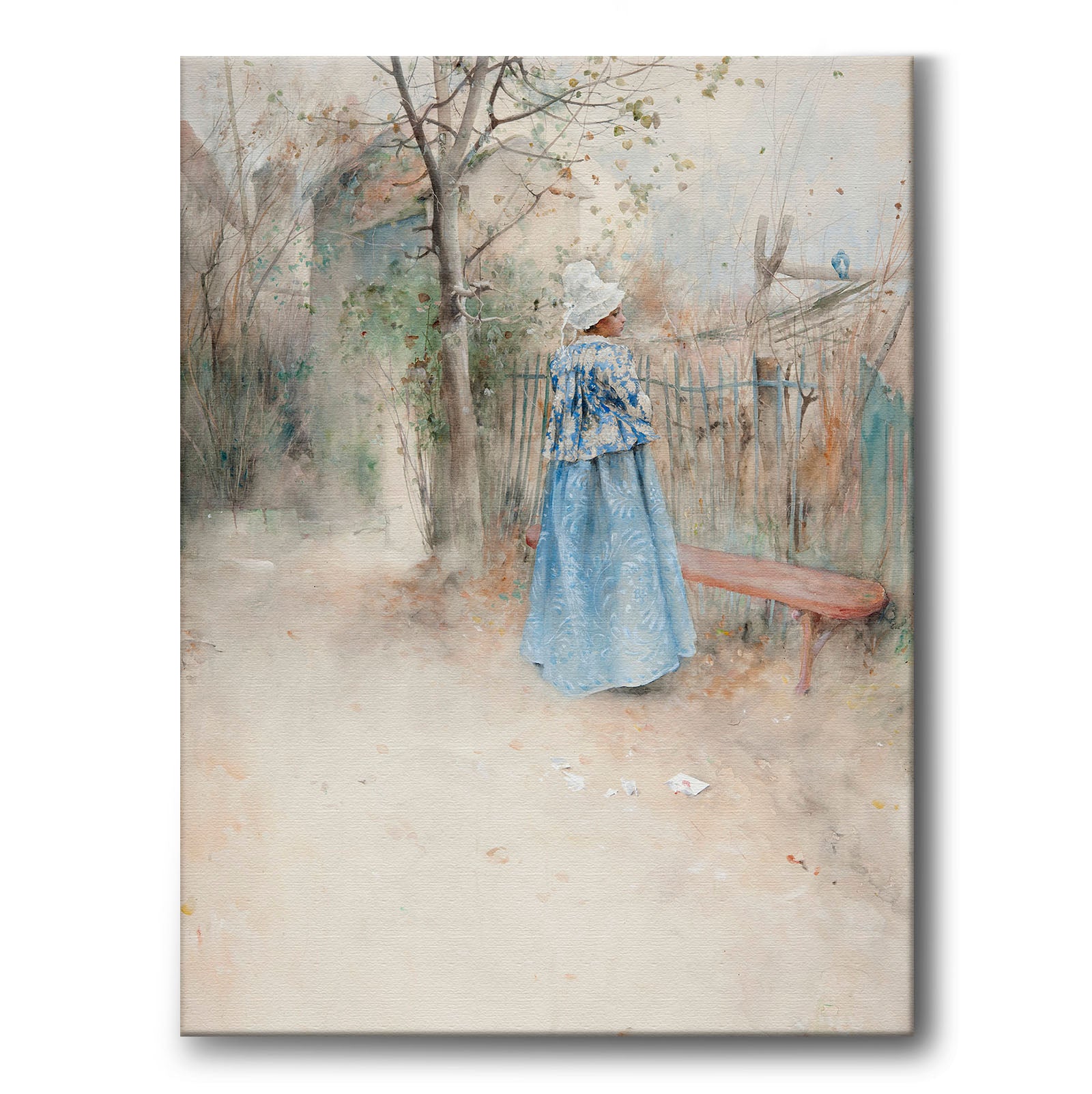 Canvas with one of Carl Larsson's finest watercolors Autumn from 1884. The young woman in 18th-century clothing stands in a hazy landscape with soft tones. A work of fantastic open-air realism.