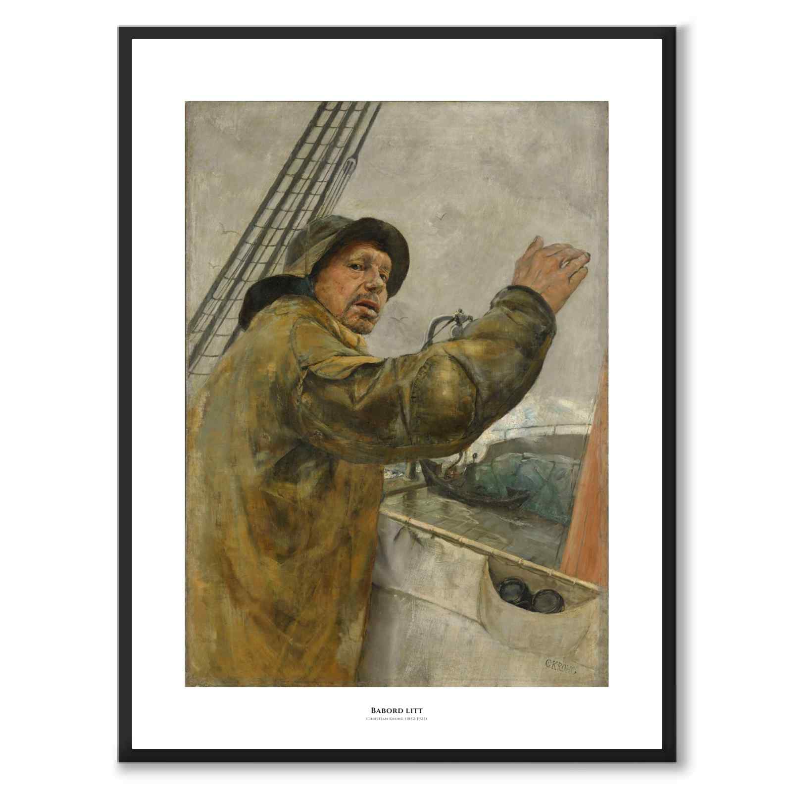 Poster med målningen "Babord litt" av den norske konstnären Christian Krohg (1852-1925) som är känd för sina realistiska skildringar av livet i Norge, särskilt inom marinmåleri och socialt engagerade verk.