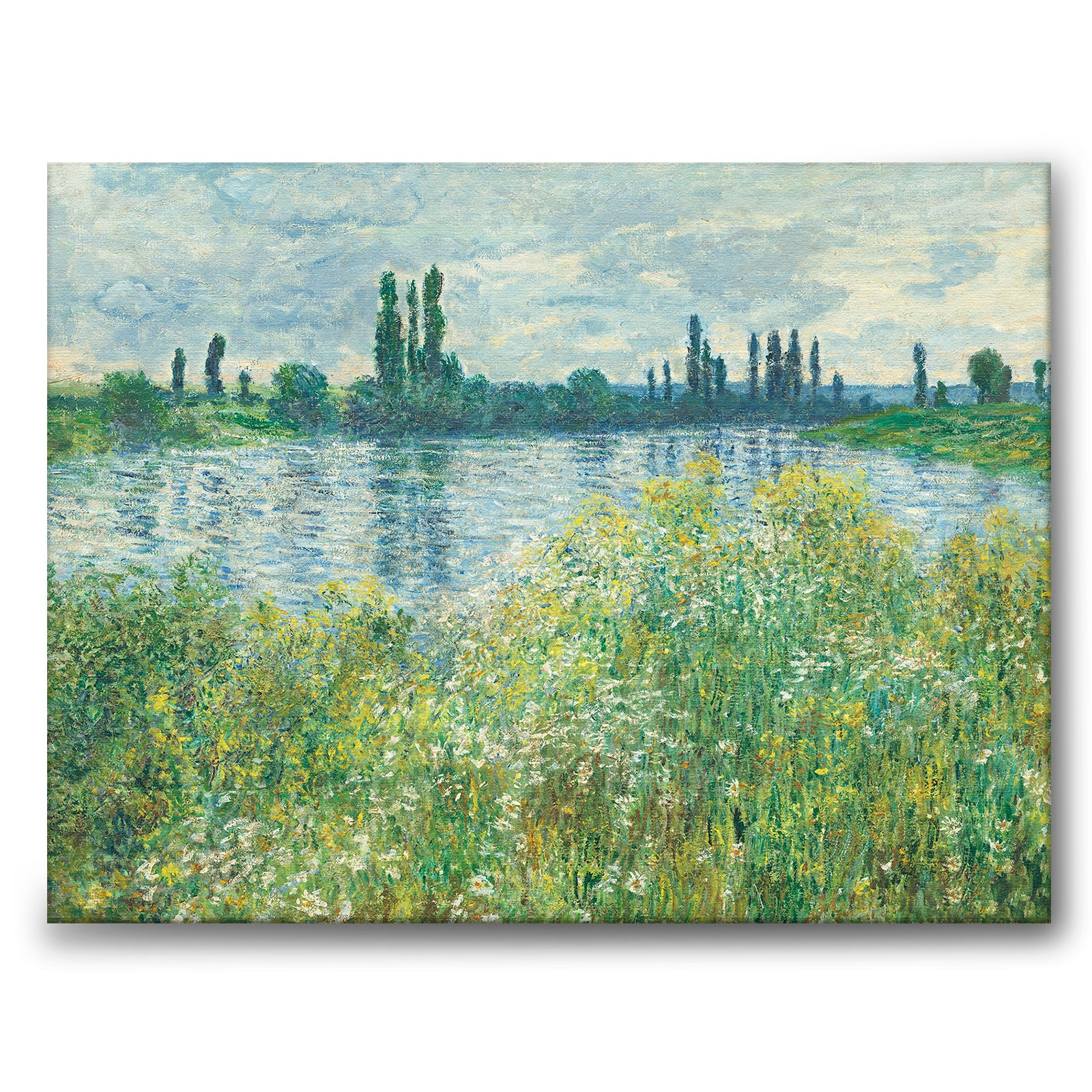 Canvas with the painting Banks of the Seine, Vétheuil by Claude Monet. In the picture we see lush summer greenery by the long river Seine that runs through northern France. Vétheuil is a commune 6 miles northwest of Paris.