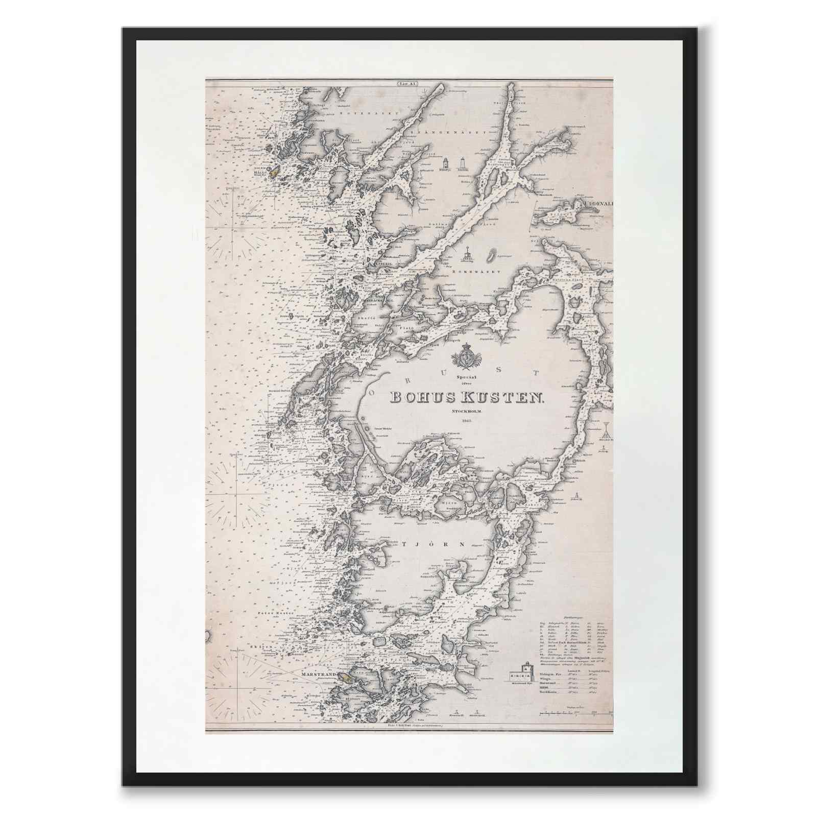 Poster with an old sea map of Bohuslän, Sweden in 1863. On the map we see, among other things, the text "Special map of Bohuskusten".