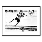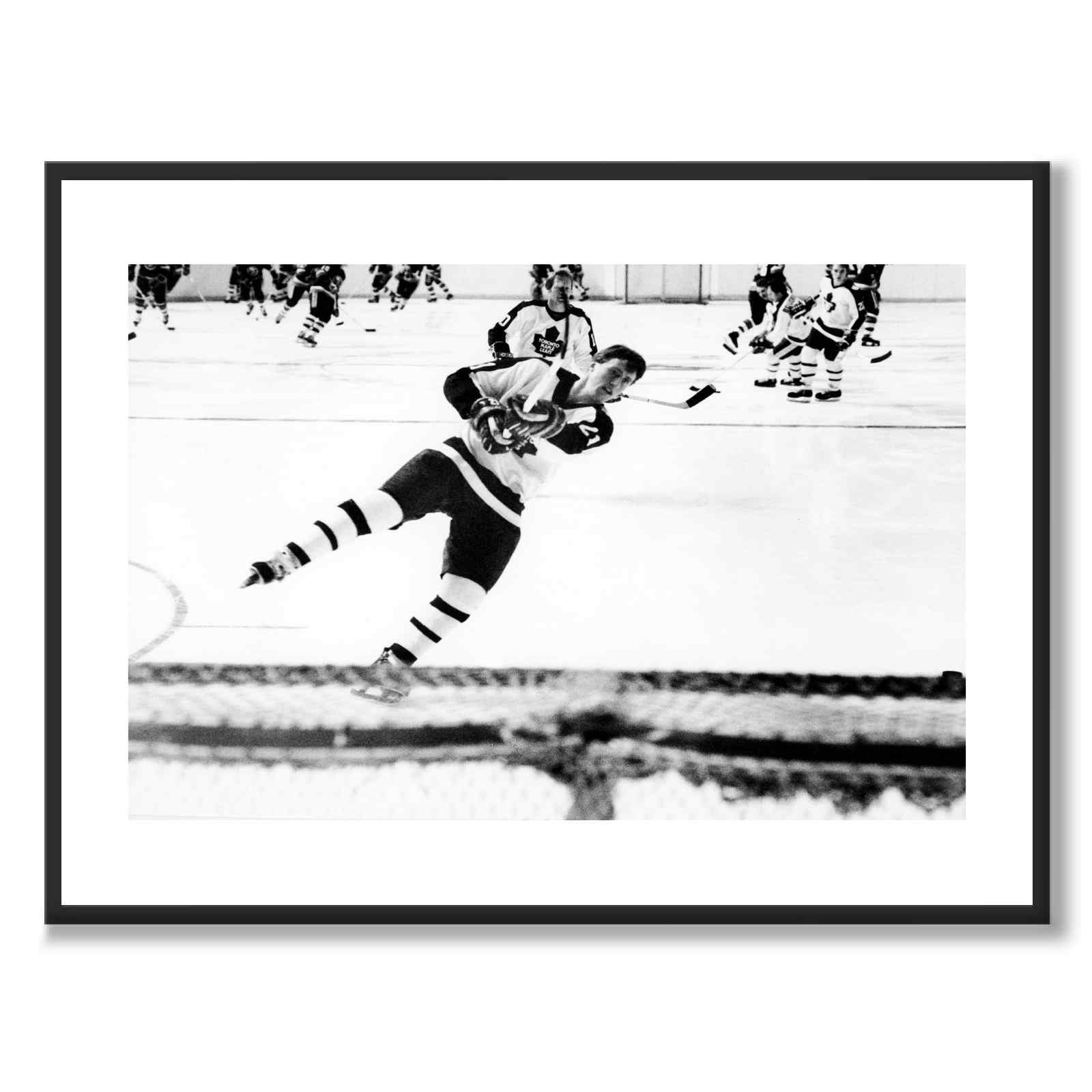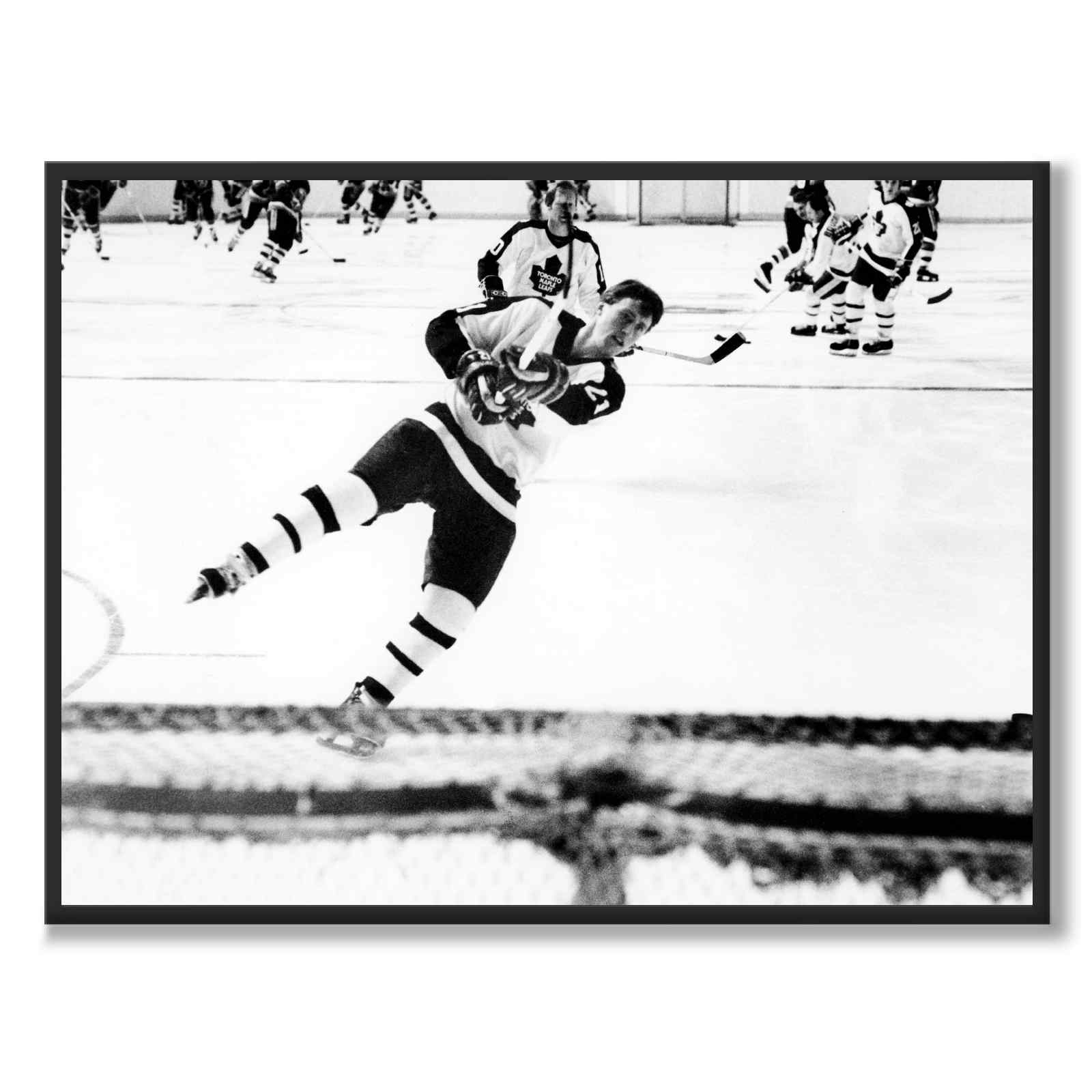 Poster with a vintage photograph of Börje Salming in a Toronto Maple Leafs jersey, number 21, during an NHL game.