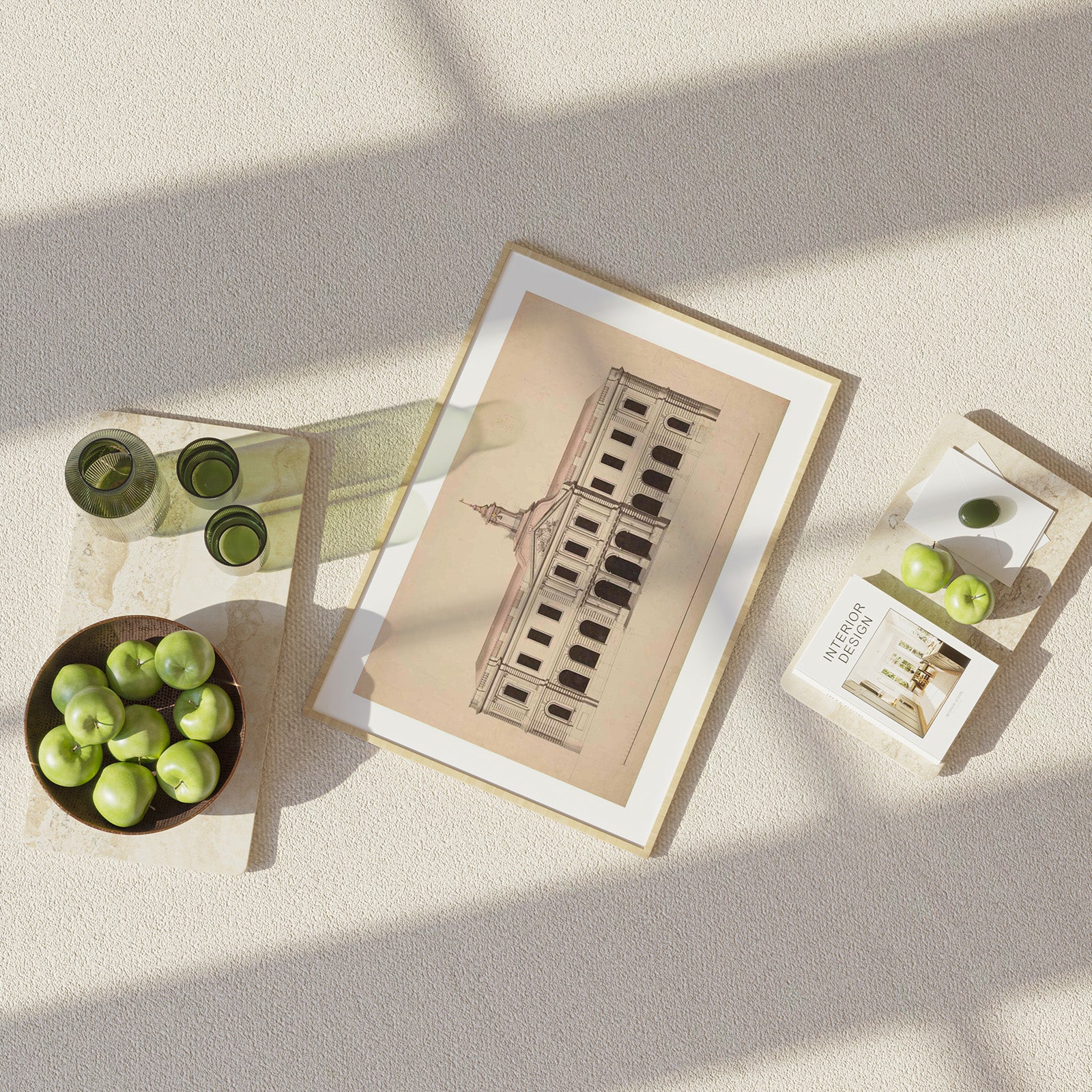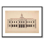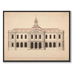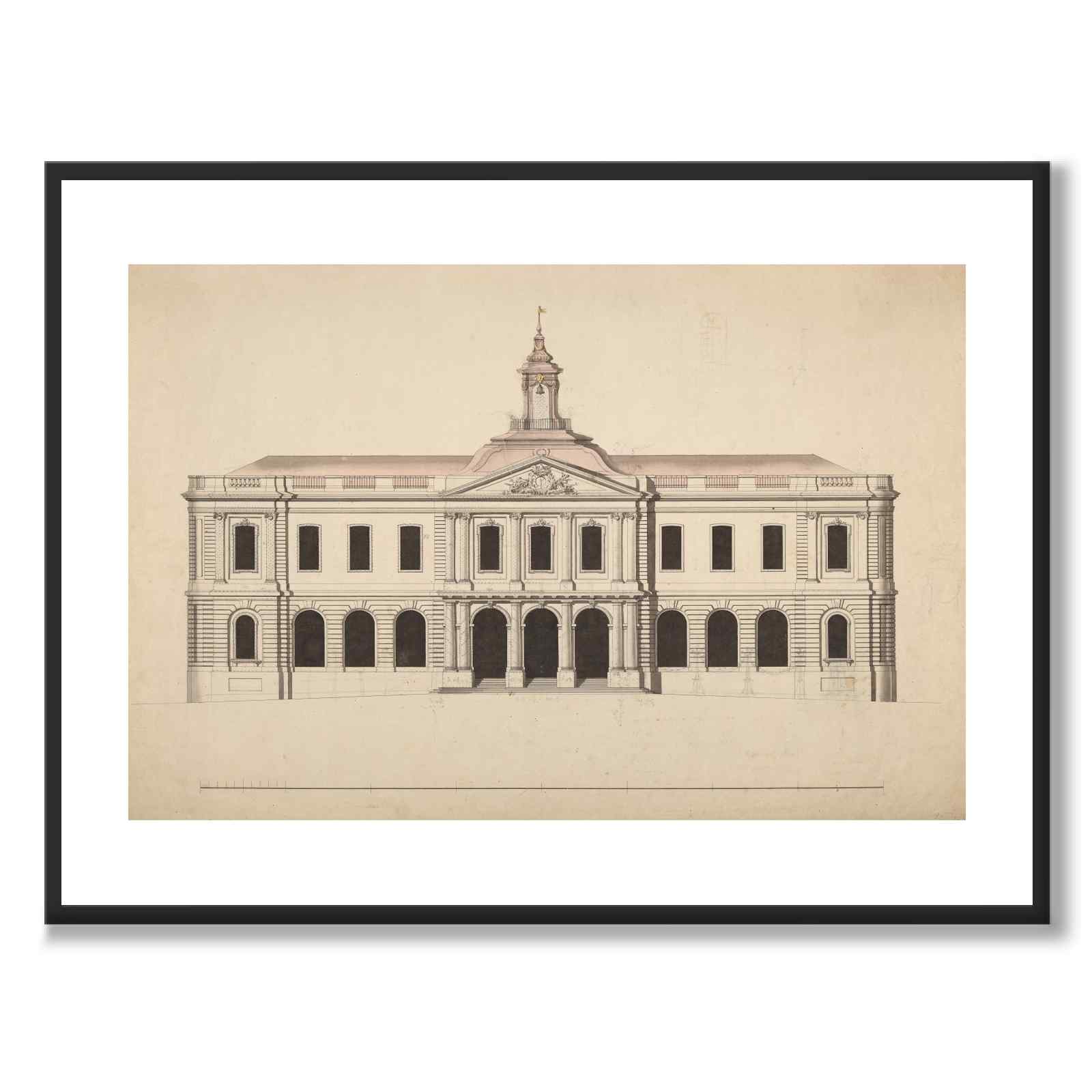 The poster shows a drawing of the Stock Exchange Building on Stortorget in Gamla Stan, Stockholm, which was inaugurated in 1776 and completed in 1778. The building was one of the most important public projects for the city at the time, and after many proposals, this final proposal was approved by the bourgeoisie. The Stock Exchange Building was an important center for trade and finance and reflected the architectural ideals of the time with a classicist design.