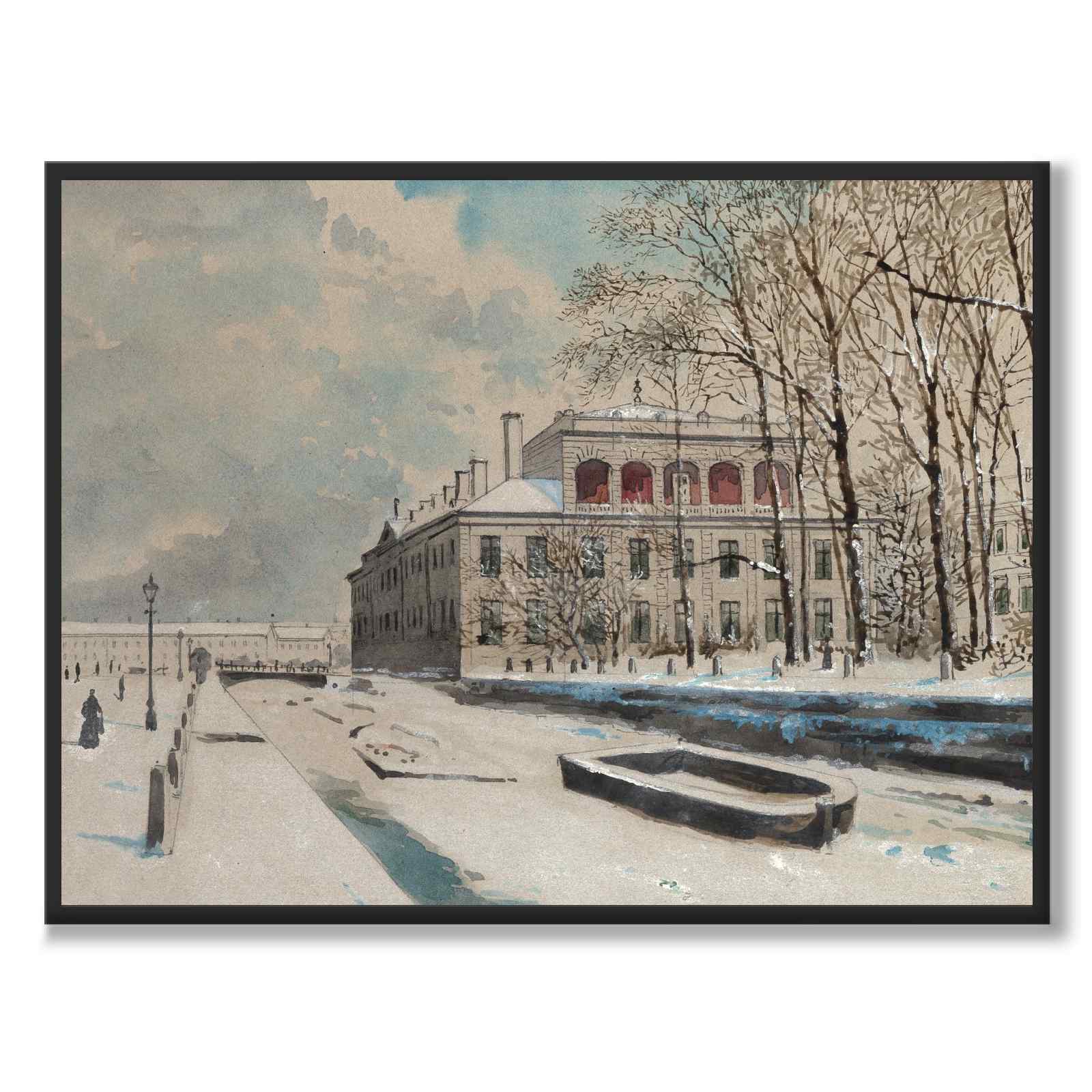Poster with a beautiful painting of Brunnsparken, The Harbor Canal and Fürstenberg Palace Gothenburg. The artwork was created by the Danish artist Ludvig Messmann in 1890 and is part of a whole series of beautiful Gothenburg motifs.