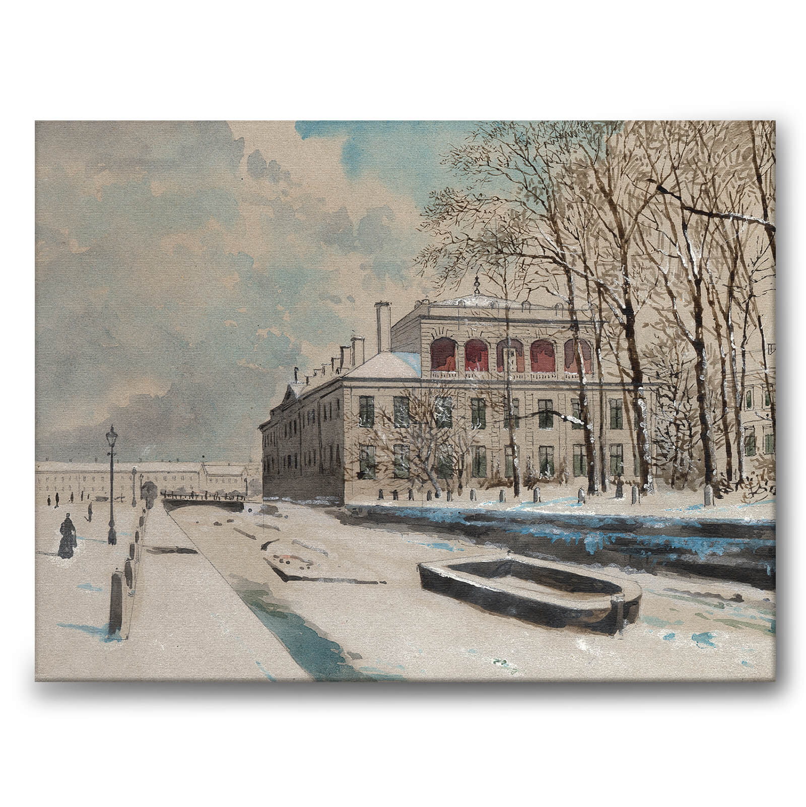 Canvas with a beautiful painting of Brunnsparken, The Harbor Canal and Fürstenberg Palace Gothenburg. The artwork was created by the Danish artist Ludvig Messmann in 1890 and is part of a whole series of beautiful Gothenburg motifs.
