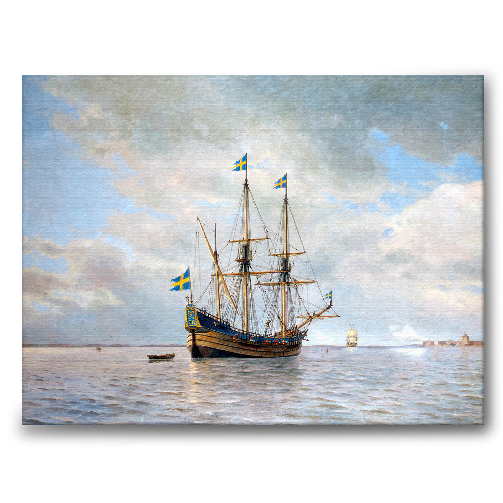Canvas with a classic oil painting of the famous ship Calmare Nyckel leaving Gothenburg. The painting was painted in 1922 by the beloved naval artist Jacob Hägg, who was also a Swedish naval officer.