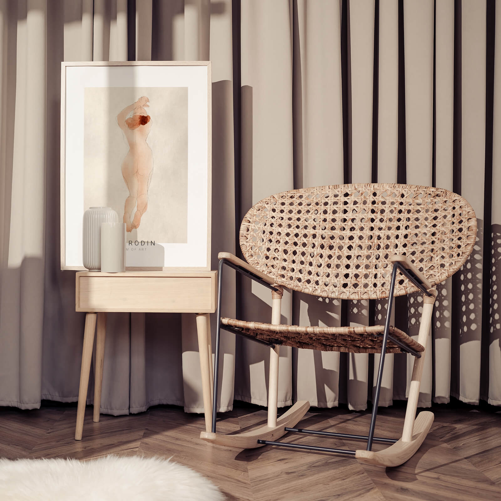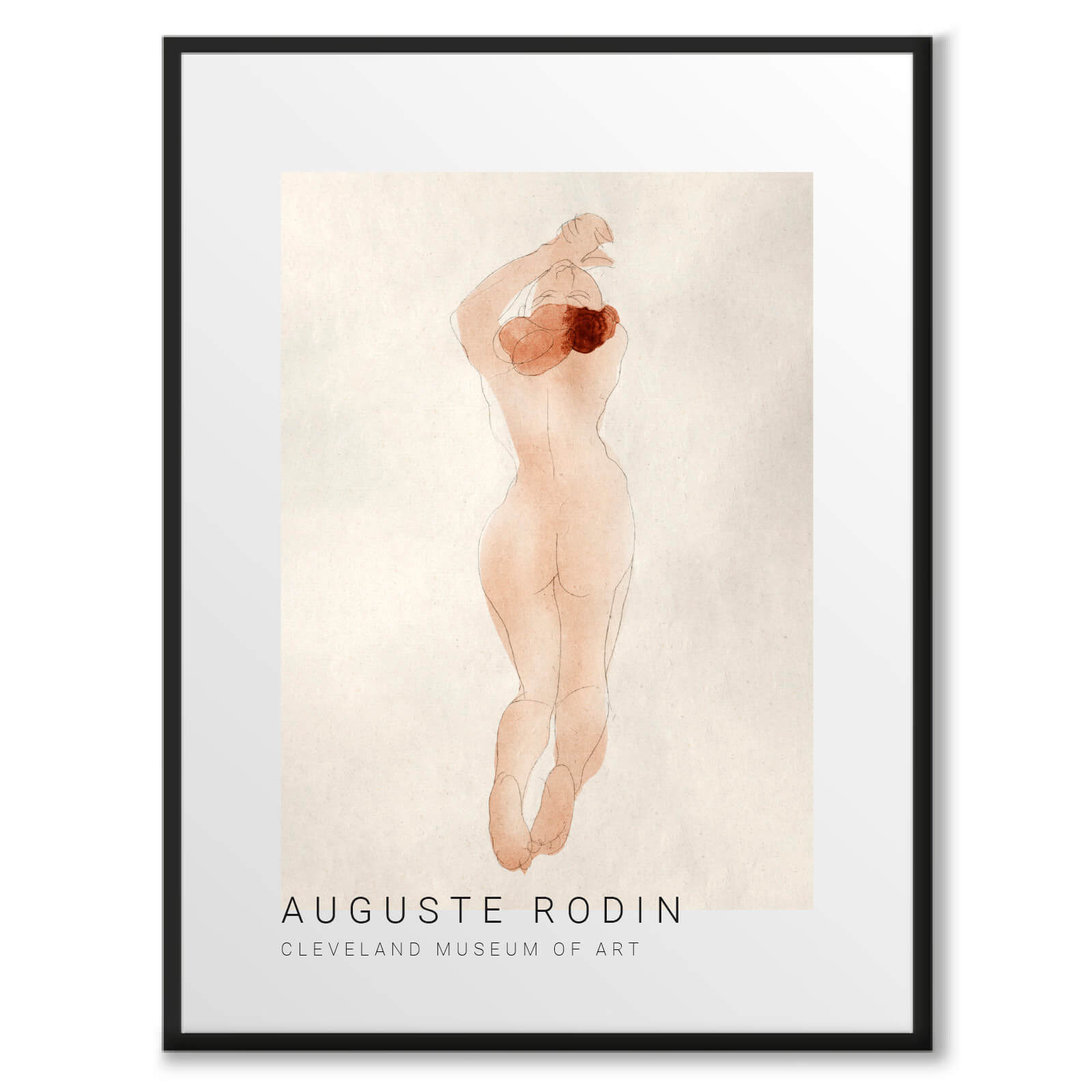 Poster with a vintage nude illustration by none other than the famous sculptor Auguste Rodin (1840-1917). The motif is called Caresse: moi danc, chéri, French for Smeka: I dance, darling. The original is at the Cleveland Museum of Art.