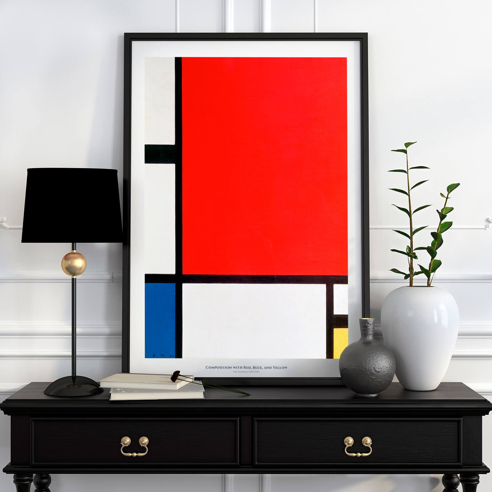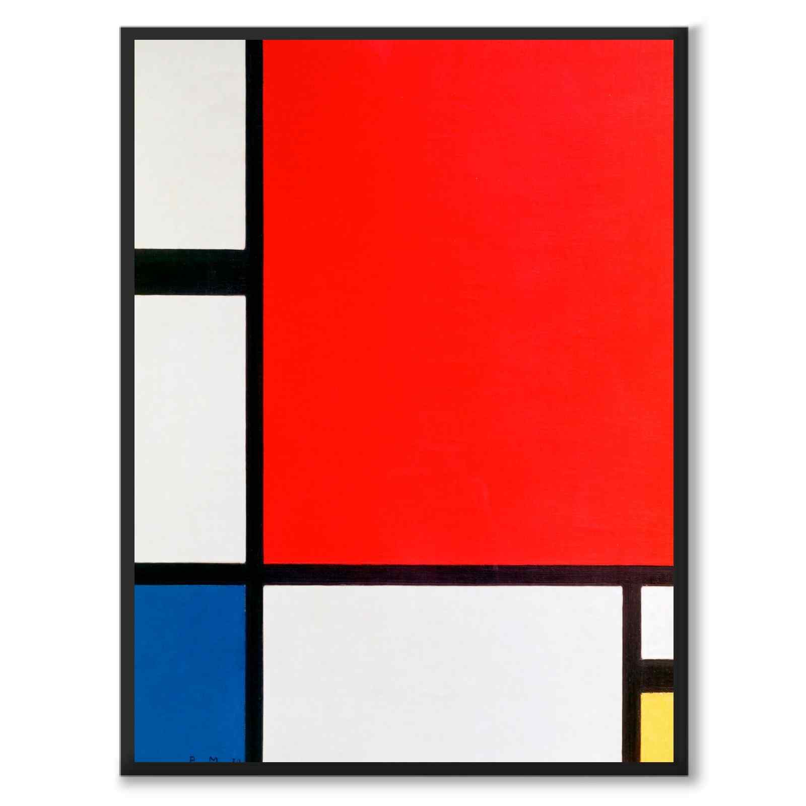 Poster with Piet Mondrian's perhaps most famous work, Composition with Red, Blue, and Yellow . Original painted in oil on canvas. Piet Mondrian was a Dutch artist who lived between 1872 and 1944 and is considered one of the greatest artists of the 20th century. He was a significant pioneer of abstract art and very famous for his compositions with geometric shapes and basic colors .