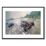 Poster with the illustration "Crosby", a work by Frederick Gordon Crosby (1885-1943) who was a British artist known for his dynamic and dramatic depictions of early motor sports.