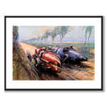 Poster with the illustration "Crosby", a work by Frederick Gordon Crosby (1885-1943) who was a British artist known for his dynamic and dramatic depictions of early motor racing.