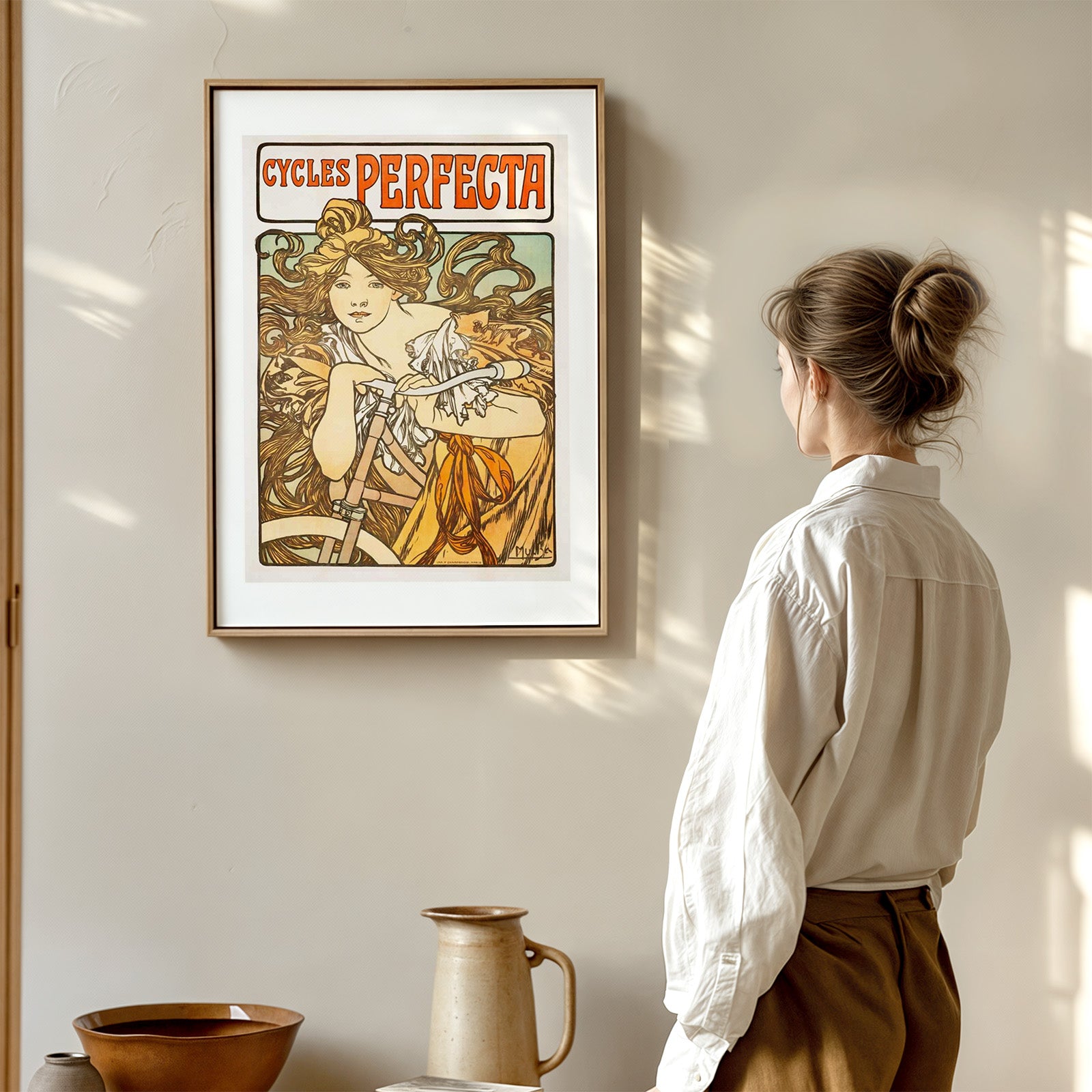 Post with the poster "Cycles Perfecta" off Alphonse Mucha (1860-1939) from the year 1899.