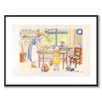 Poster with an illustration from Elsa Beskow's picture book "Duktiga Annika" which was published in 1941. The book is about Annika, a kind and talented girl who helps look after the cow Majros.