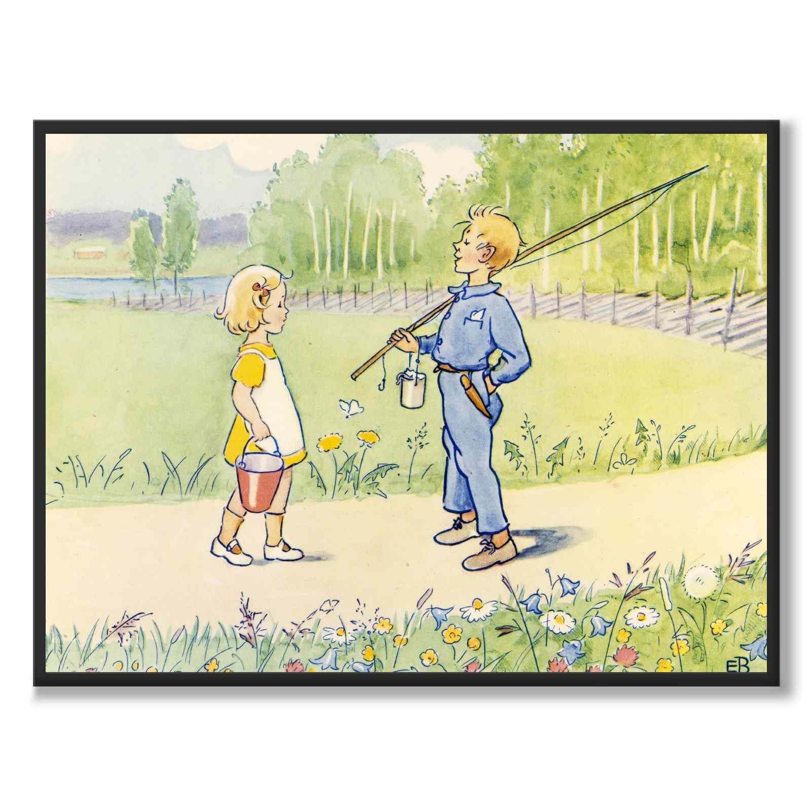Elsa Beskow (1874-1953) var en svensk barnboksförfattare och illustratör, känd för sina fantasifulla barnböcker som ofta innehåller pedagogiska element. Hennes bok "Duktiga Annika" är ett fint exempel på Beskows sätt att kombinera vardagliga situationer med lärorika insikter för barn. Se fler motiv av Elsa Beskow här.