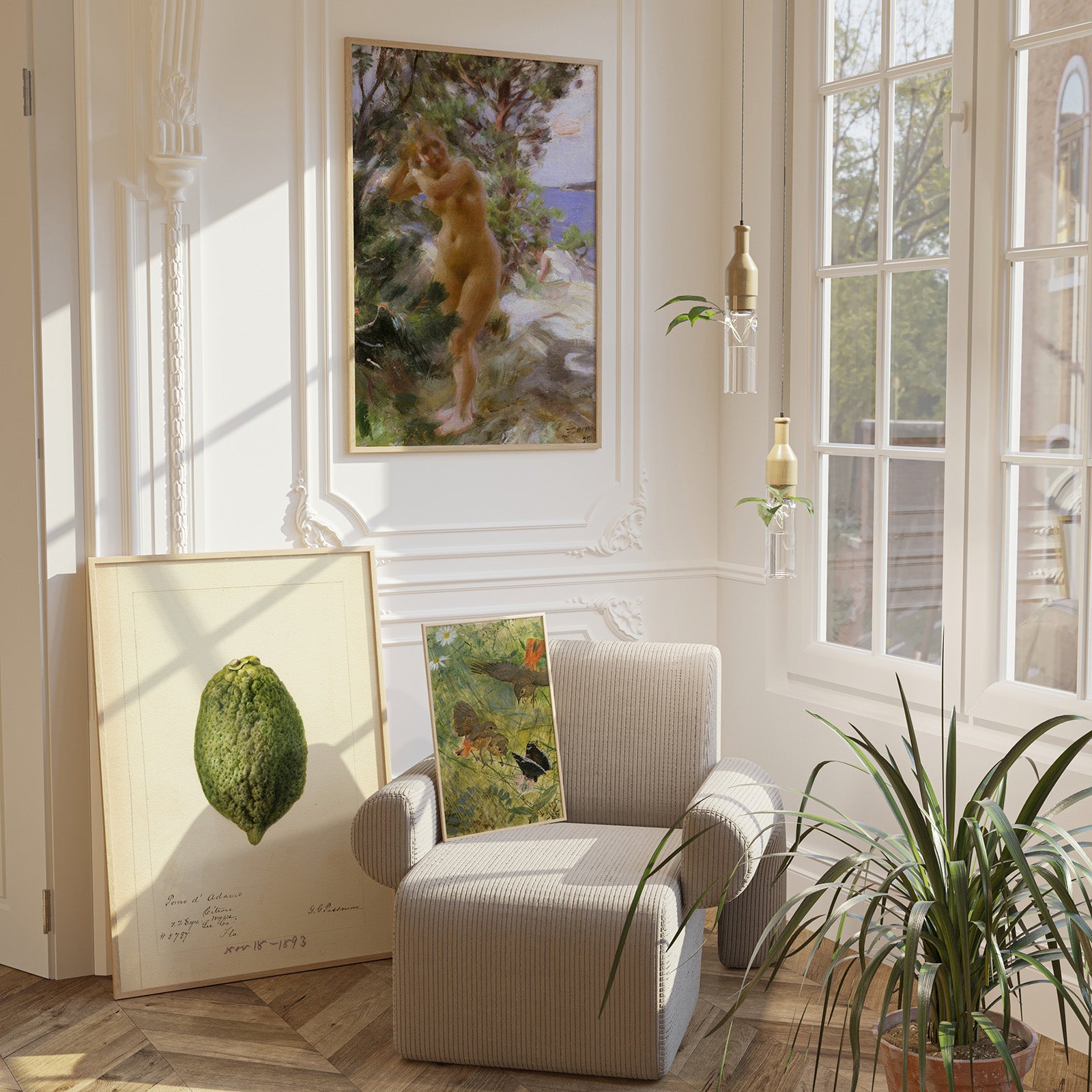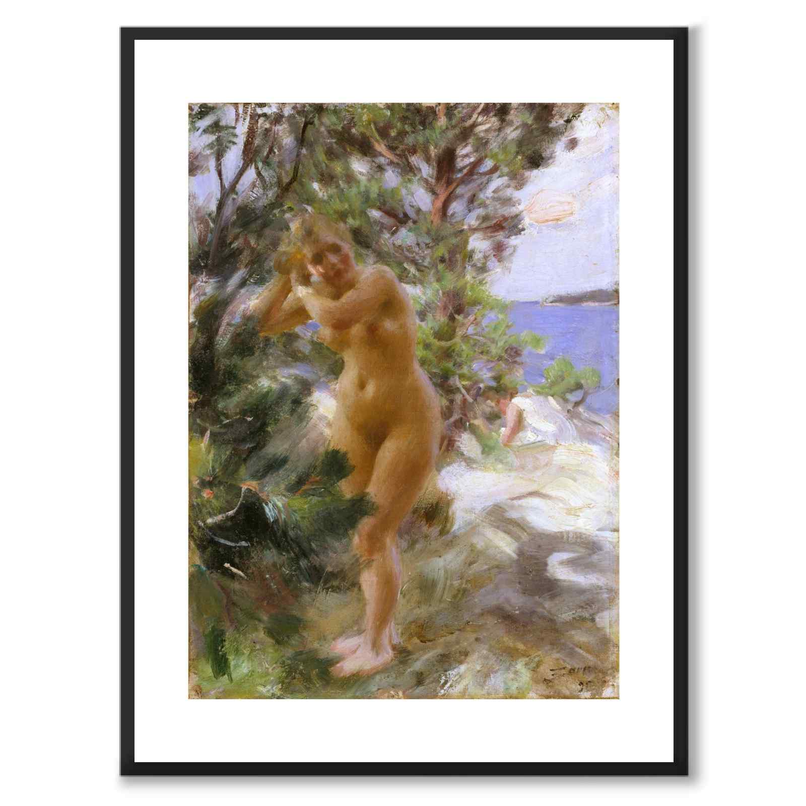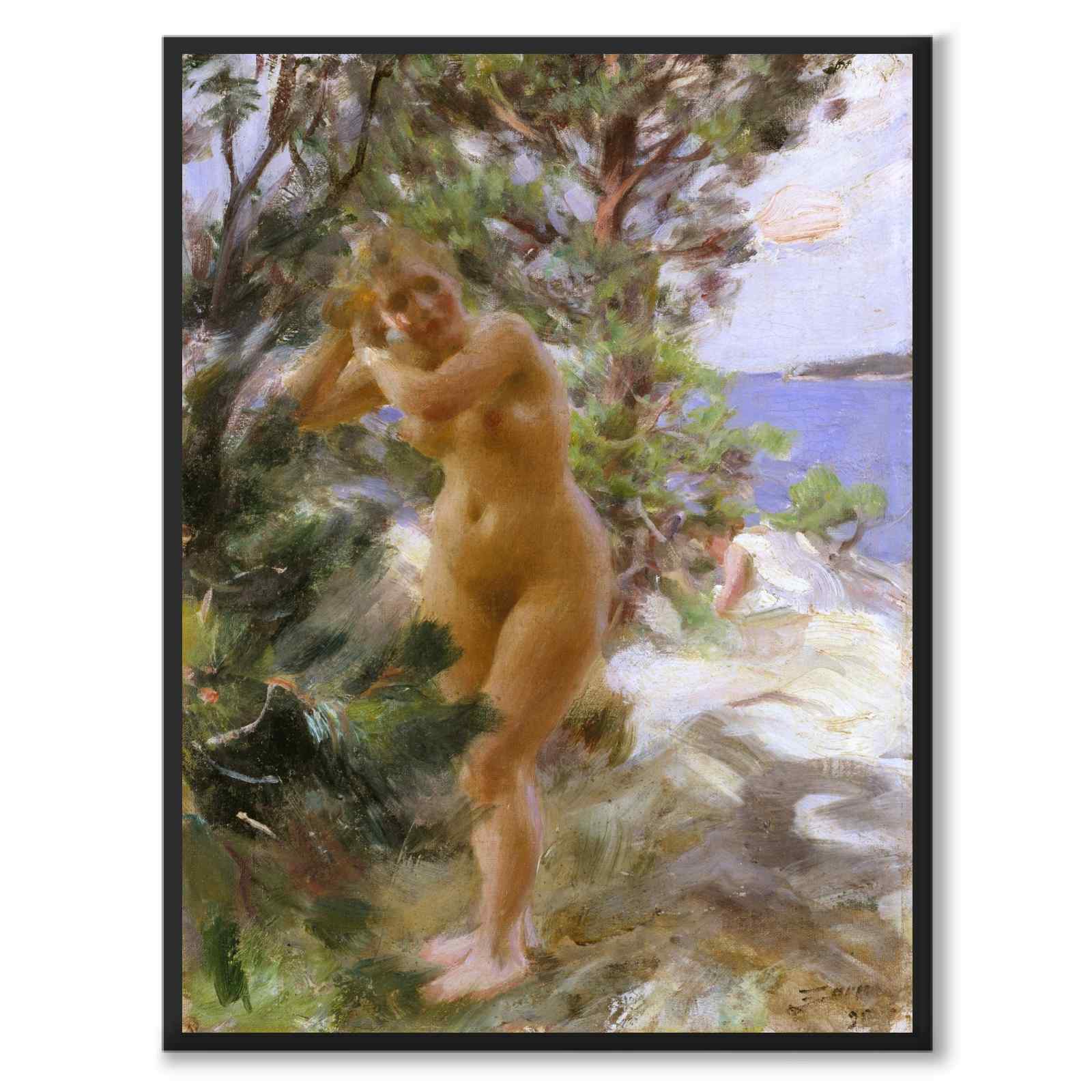 Poster with the painting After the bath from the year 1895 by the well-known artist Anders Zorn.