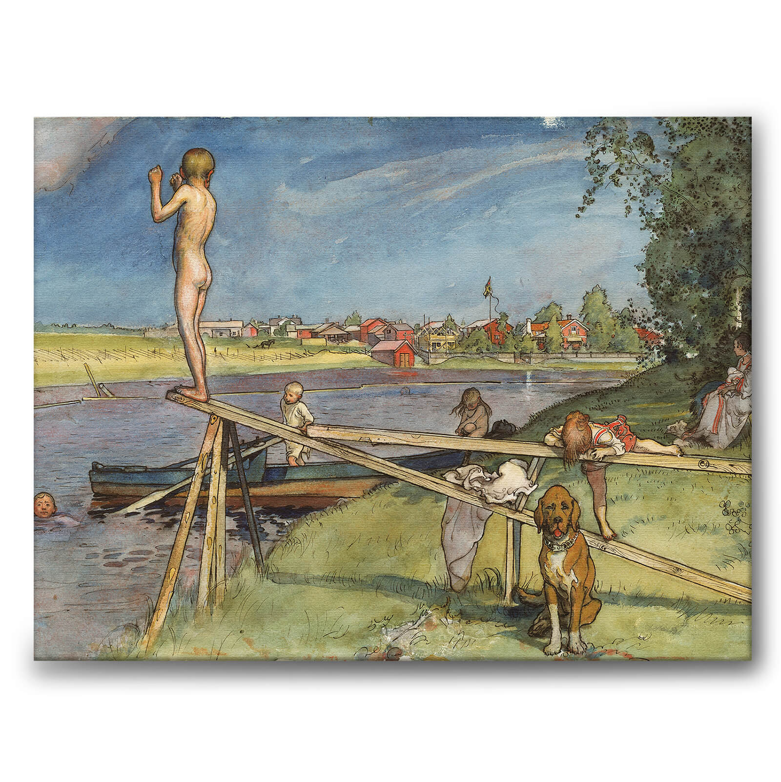Canvas with the summery watercolor painting A good bathing place by Carl Larsson from the year 1896.  The work was published as part of "Ur Ett hem (26 watercolors)" in 1899.