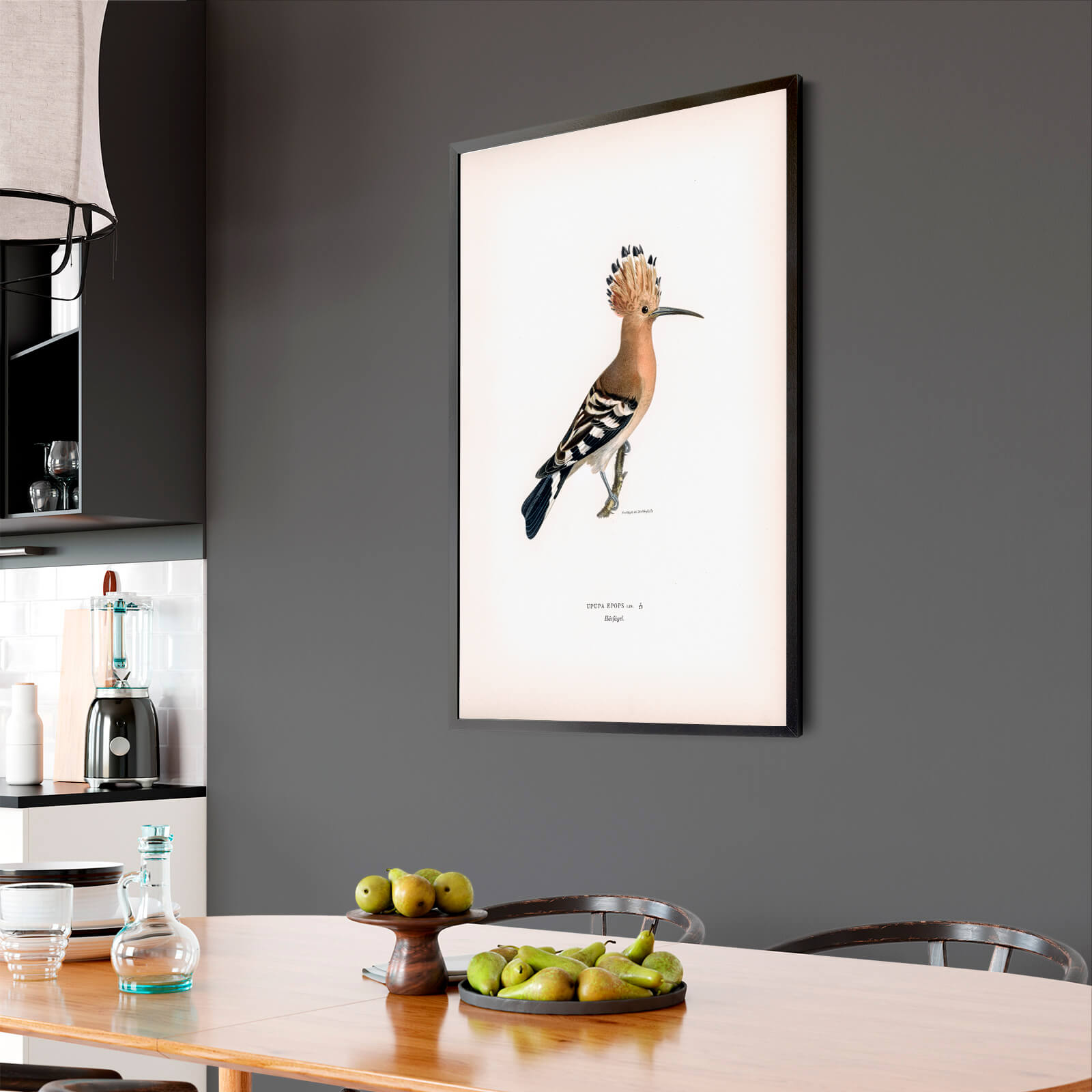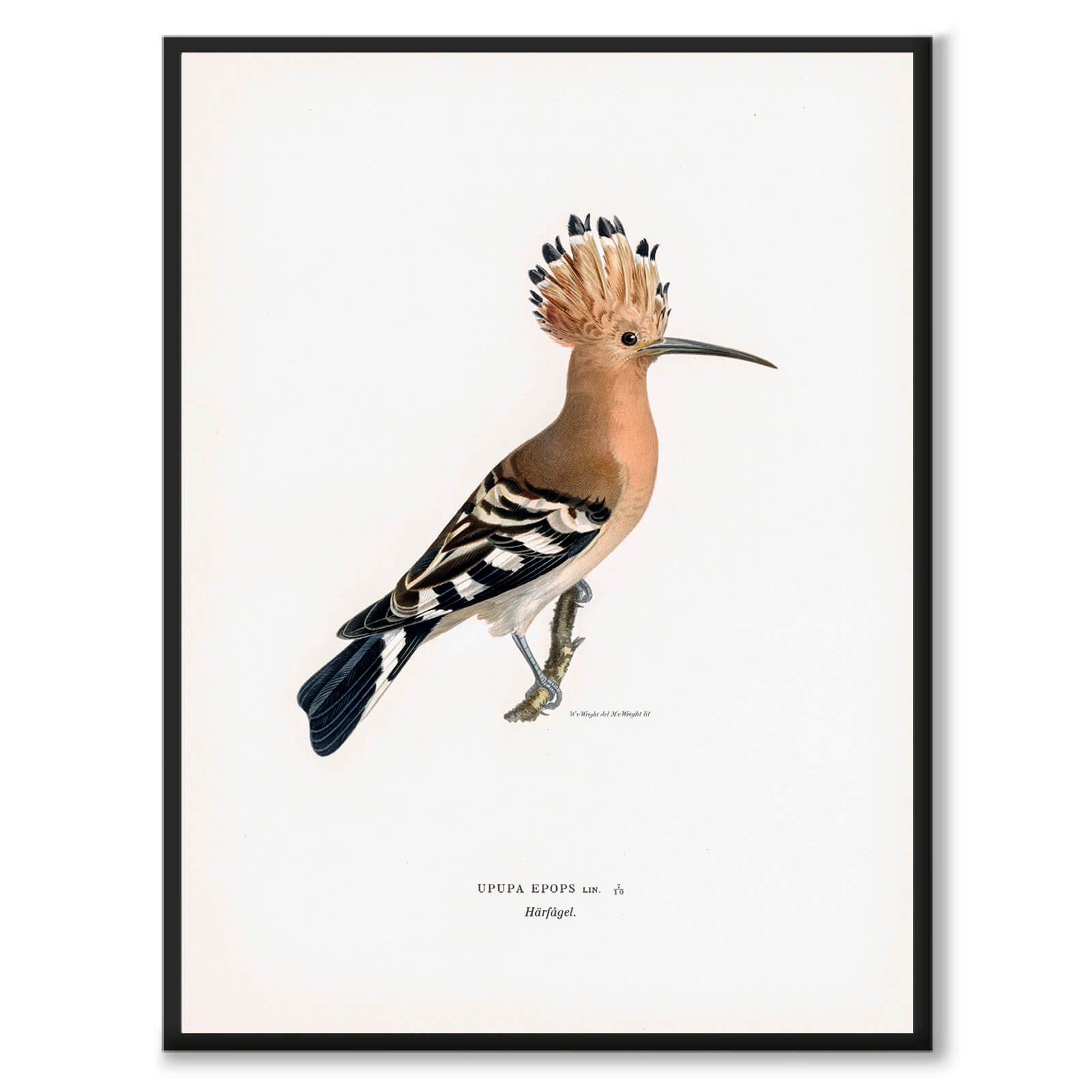 Poster with an old illustration of a deer . The illustration was drawn by the von Wright brothers and published at the beginning of the 20th century in the book Swedish Birds After Nature Och På Sten Ritad. In the picture we see, among other things, the text Upupa Epops - Latin for the name of the species .