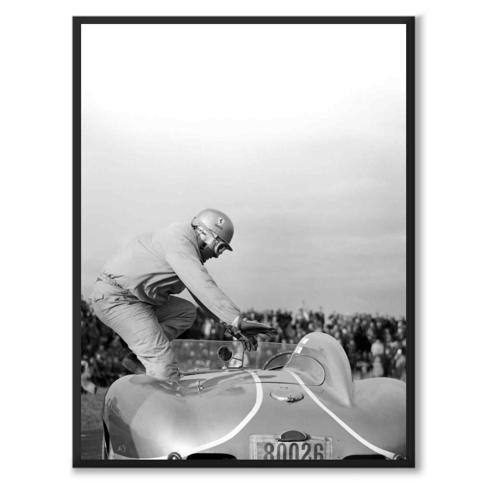 A unique photograph of the Le Mans start at Gelleråsen, Karlskoga in 1957. In the picture we see Carl-Otto Bremer getting into a Ferrari 750 Monza to start the race. Bremer then finished the race in second place.