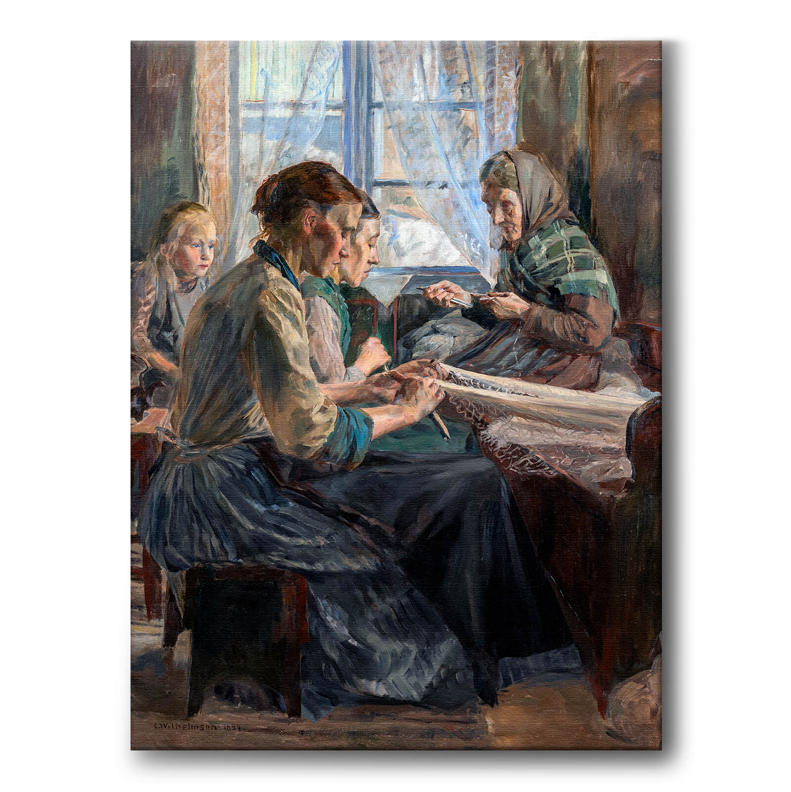 Canvas with the beautiful painting Fisherwomen tying nets, Bohuslän from 1894. The painting was created by Carl Wilhelmson who was a Swedish painter, draftsman, graphic artist, art educator and professor at the Royal Academy of Arts.