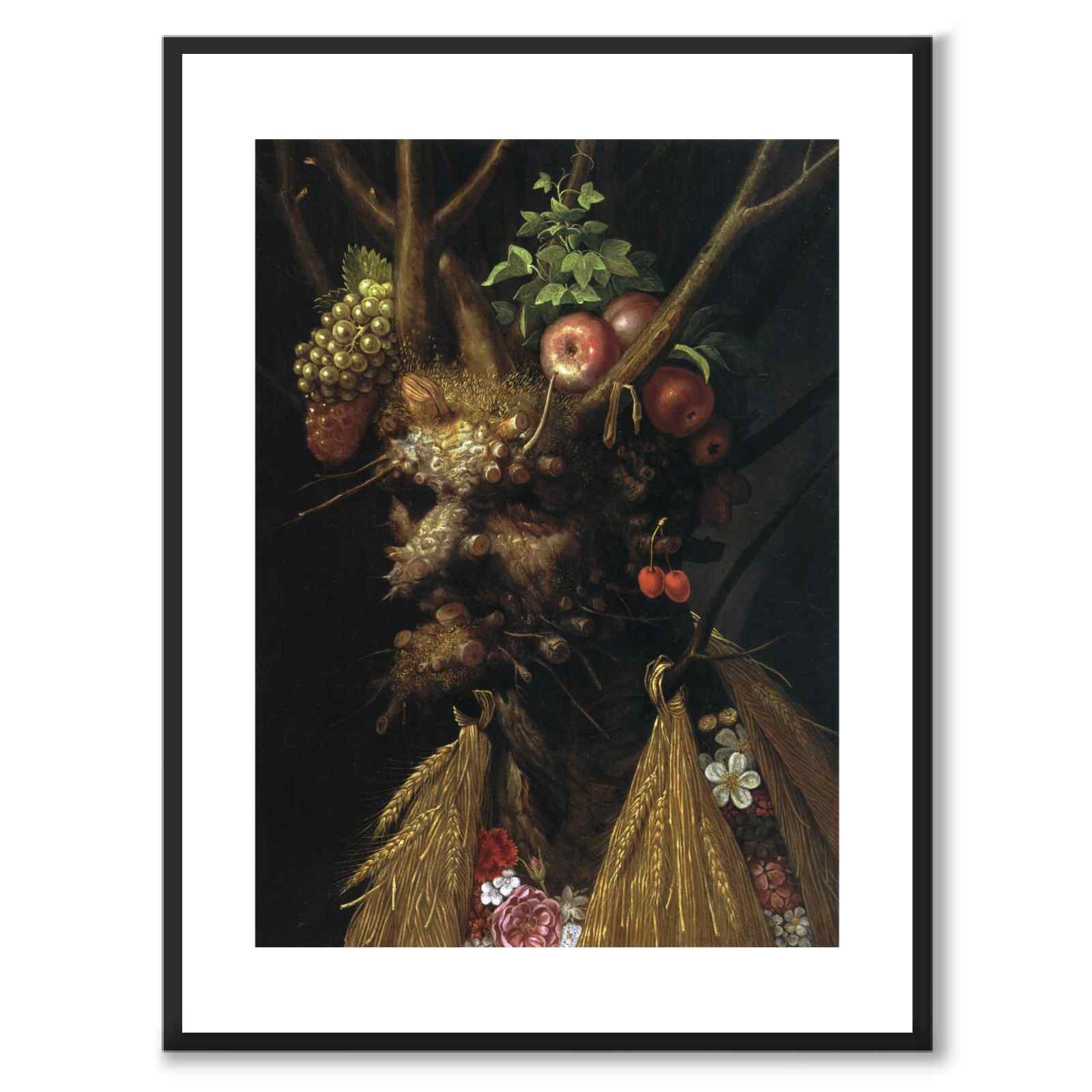 Poster with the painting "Four seasons" by the Italian Renaissance painter Giuseppe Arcimboldo (1527-1593) who is known for his imaginative portraits where he uses objects such as fruit, flowers and books to recreate faces.