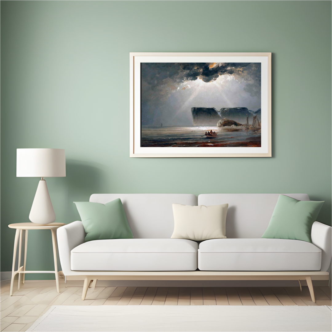 The work was created at the end of 1840 and depicts a majestic North Cape (Nordkap in Norwegian). Nordkap is the northernmost part of Norway and the place is depicted in a romantic and dramatic way, which characterized the Norwegian artist Peder Balke's style.