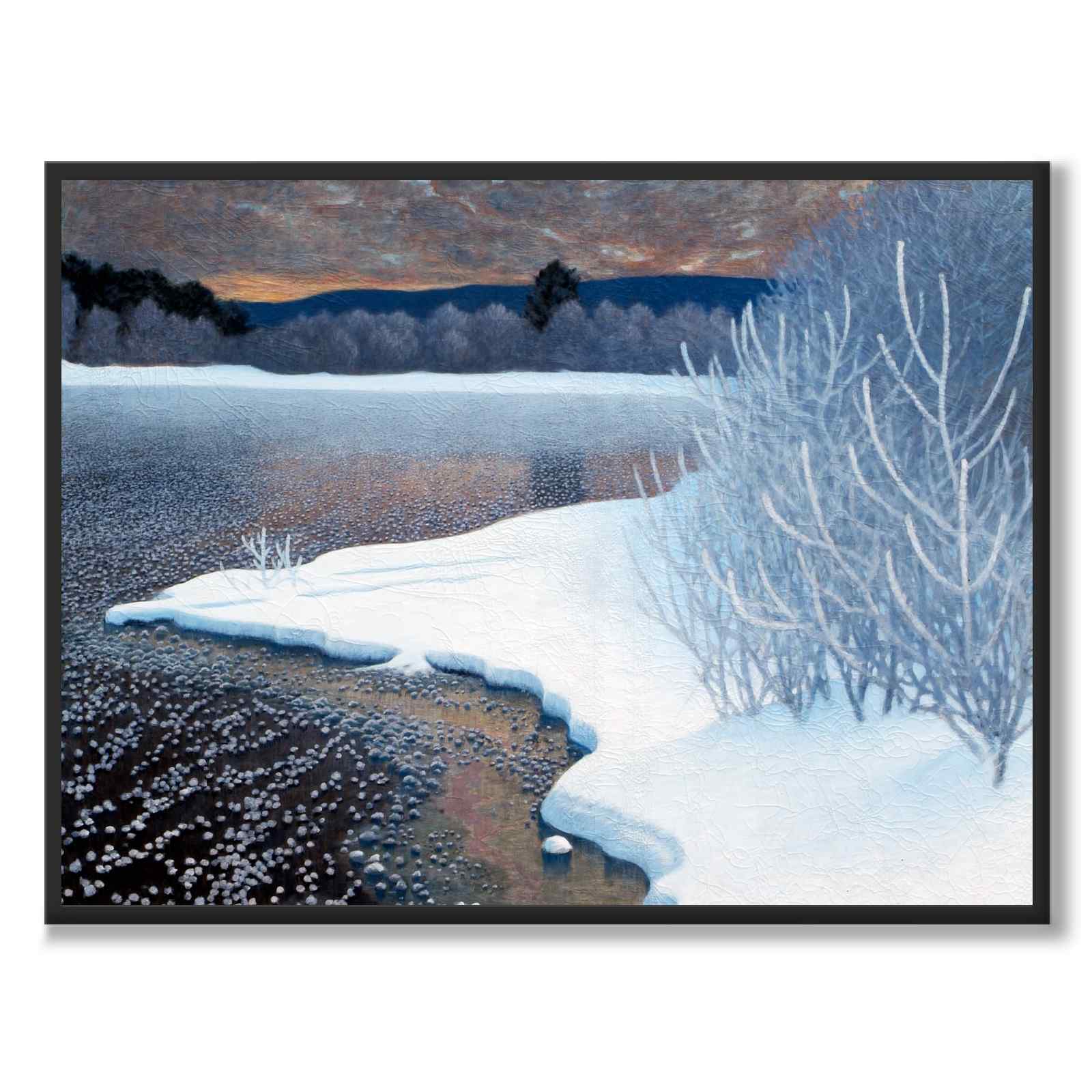 Poster with a painting from 1901 depicting a beautiful winter landscape. The painting is made by Gustaf Fjæstad (1868-1948) who began his artistic career as an assistant to Bruno Liljefors during the time he was doing decoration work for the Biological Museum. After that time got Fjæstad both Bruno Liljefors and Carl Larsson as his supervisors.