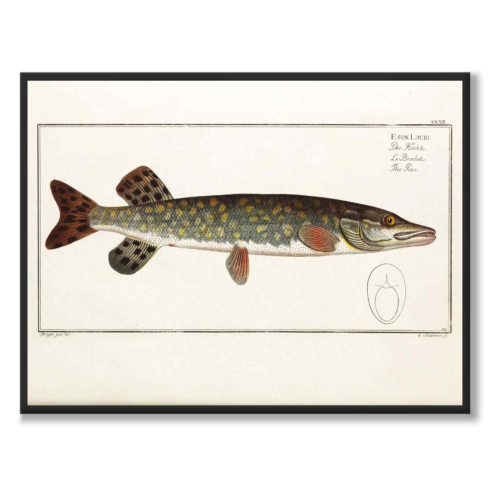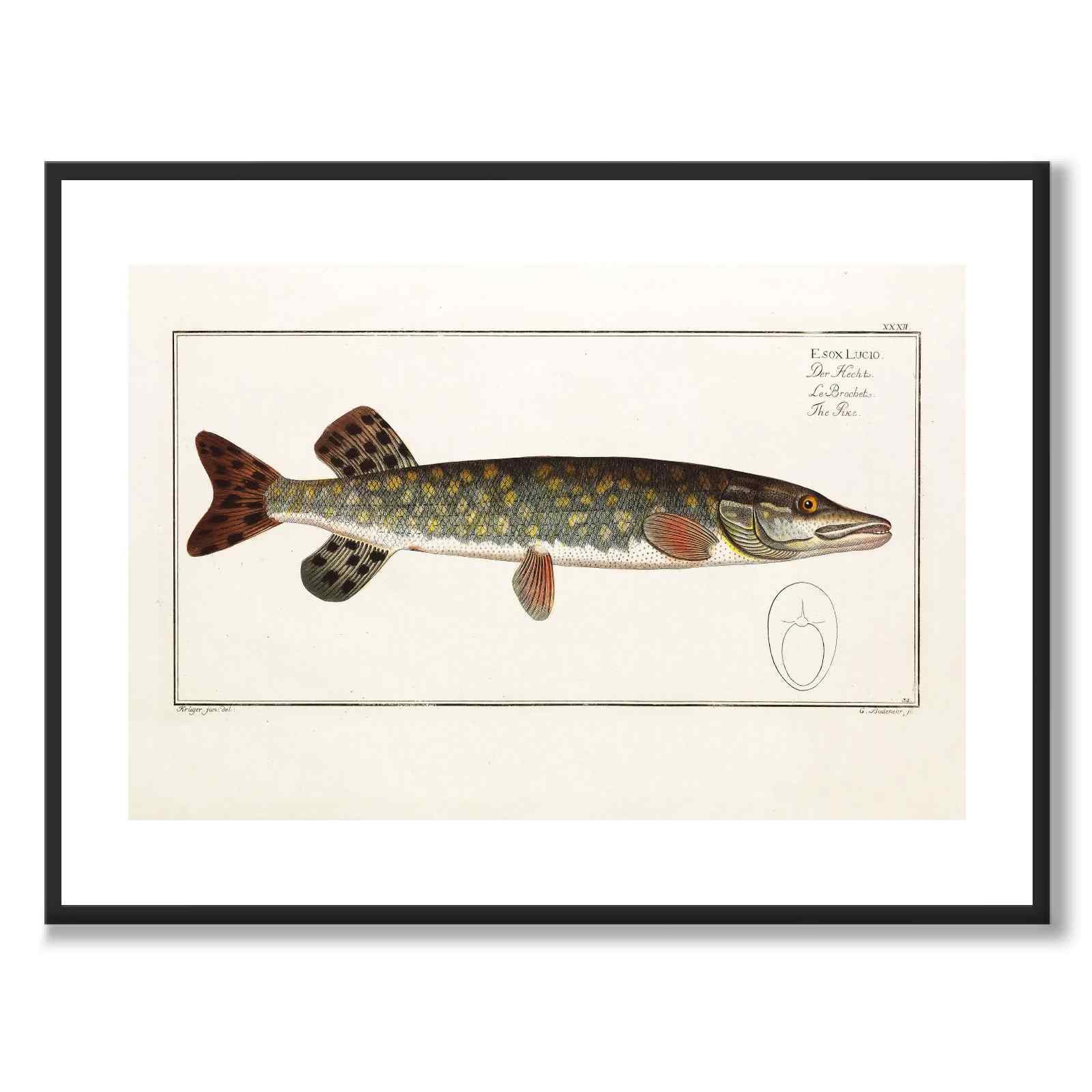Bloch's first works focused on German fishes and were completely original, based on his own observations – reliable and thorough. His studies of foreign fish, however, were based on the work of others. This meant that Bloch fell victim to many of the misconceptions that seeped through the vast amount of travelogues during the 18th century. His illustrations could therefore on the one hand show an incredibly precise precision, on the other hand a seductive imaginativeness. Each of the hand-colored illustrations is identified in several different languages.