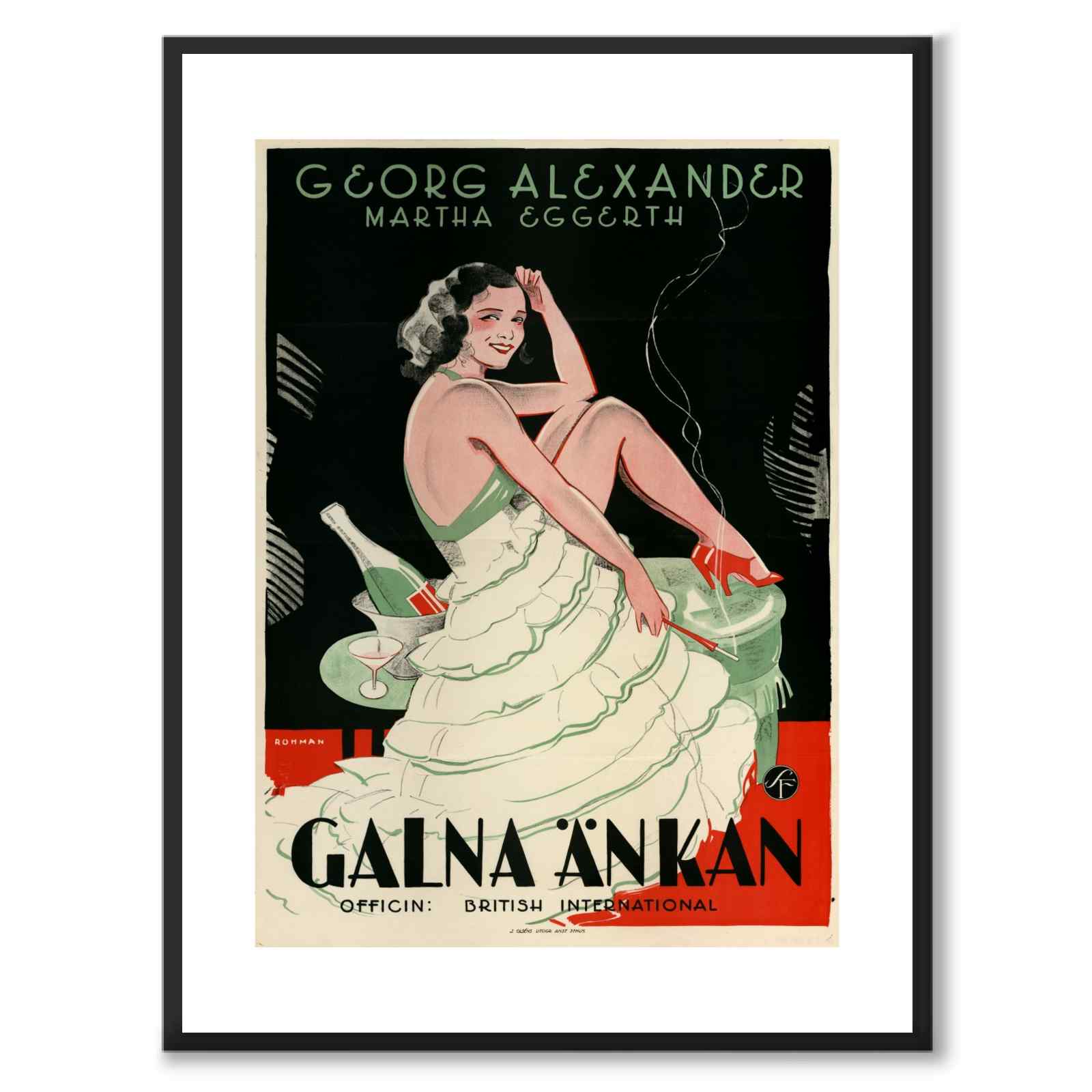 Poster featuring the 1931 film Galna Änkan , a German film classic starring Martha Eggerth and Georg Alexander (original title Die Bräutigamswitwe) .