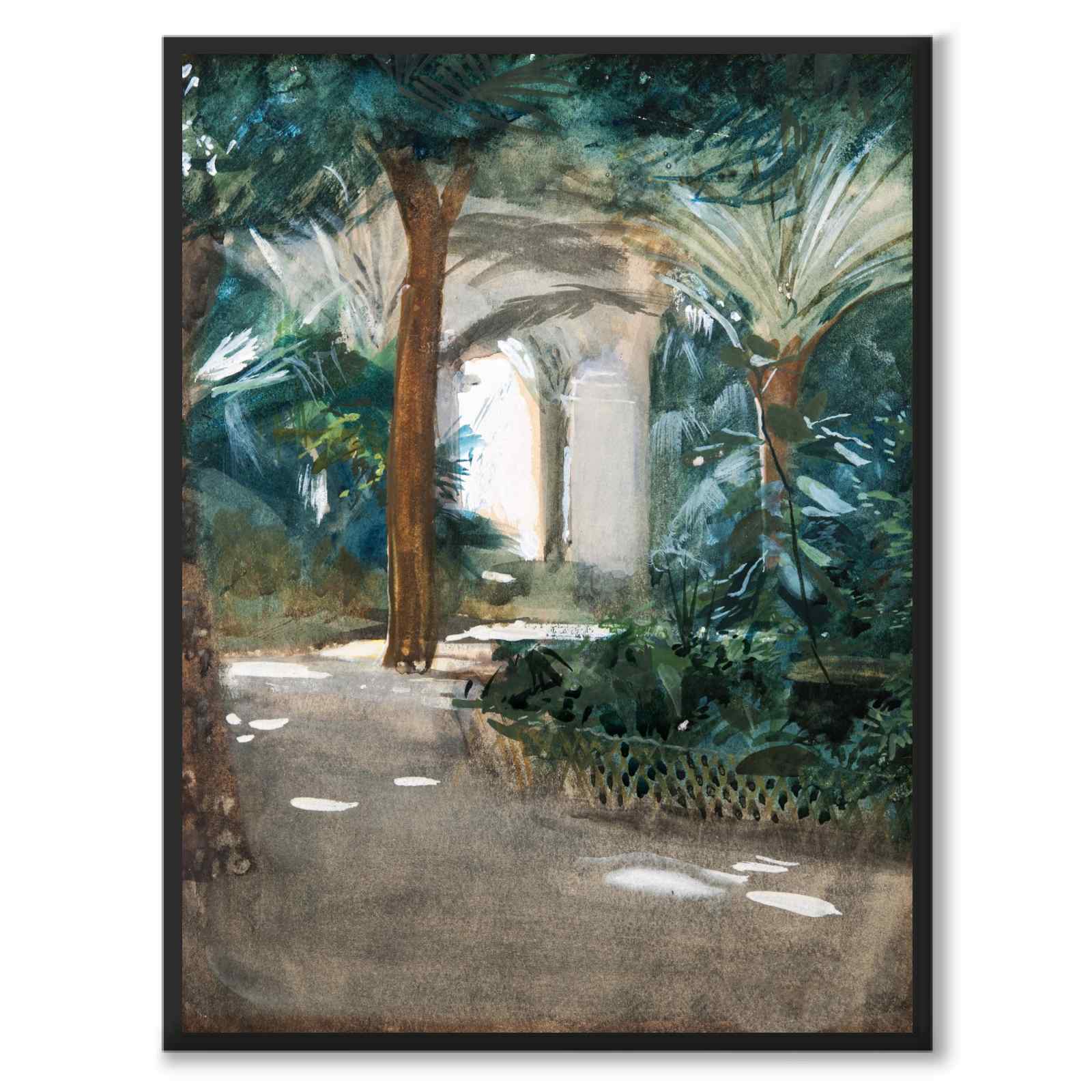 Poster with the painting Garden in Algiers by the Swedish artist Anders Zorn from 1887. The Swedish title of the painting is Garden in Algiers and it depicts a southern garden with a gravel path leading into the greenery of the picture.