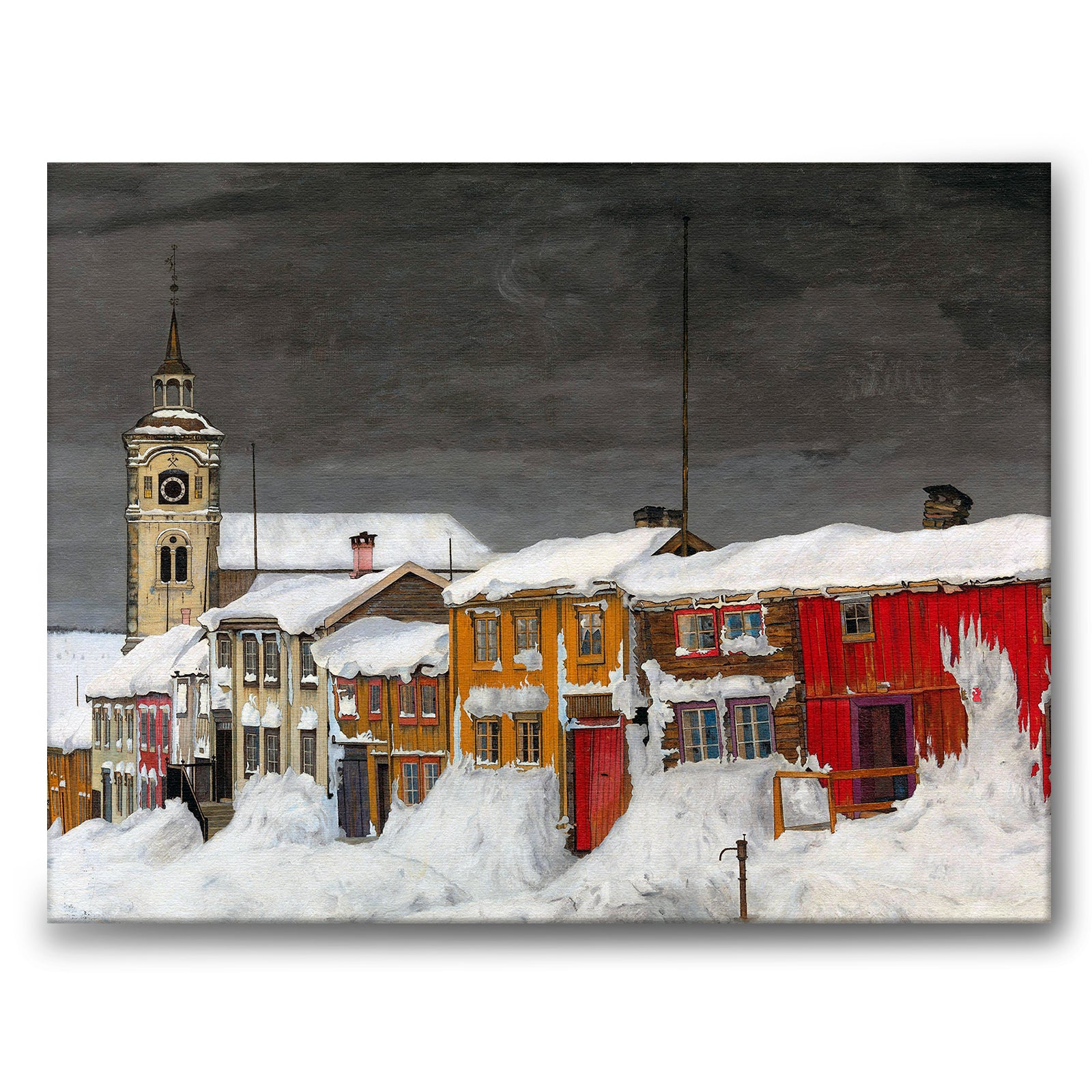 Canvas with the painting Gata i Røros, also known as Efter snestorm, Lillegaten Røros 1903 by Harald Sohlberg. Harald Sohlberg was a Norwegian neo-romantic artist. His motifs from Rondane and Røros have become something of Norway's "national painting" and contributed to Røros being on the UNESCO World Heritage List.