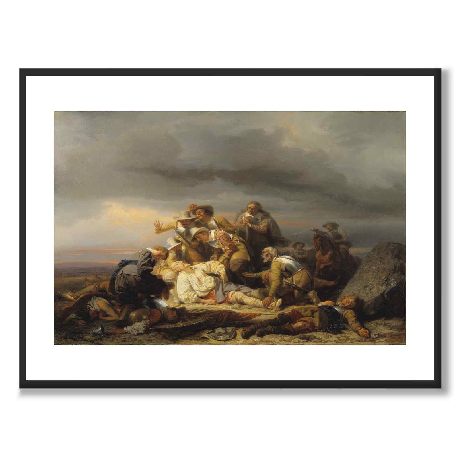 Poster with the painting "Gustaf II Adolf is found dead after the Battle of Lützen" by Carl Wahlbom from 1885.