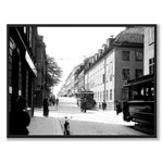 Hornsgatan west from Ragvaldsgatan in 1904. During industrialization at the end of the 19th century, Södermalm grew rapidly and became primarily the working class residential area. In the picture we see two trams and men and women in detailed, period clothing for the turn of the century.