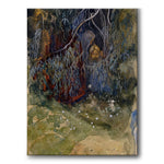 Canvas with the painting In the Woods by John Bauer from 1901. A woman and a little girl with long braids stand hidden and peeking out among the branches of a fir tree.