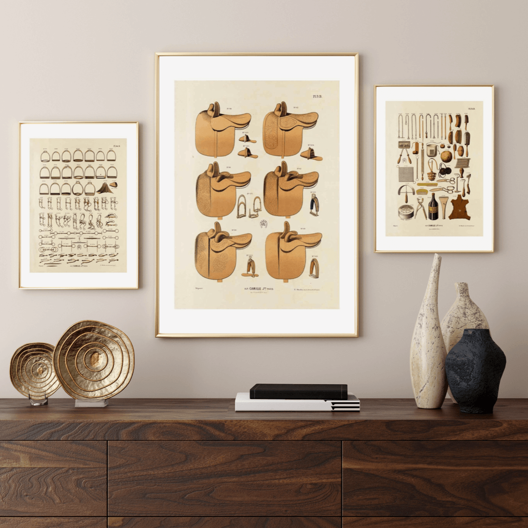 This poster is not only a tribute to this storied Parisian craft house, but also a celebration of its unique contribution to the art and history of saddlery. The detailed and beautifully executed illustration captures the elegance and quality of the house, making this poster an exquisite addition to any collector's collection and a stately decoration in any home.