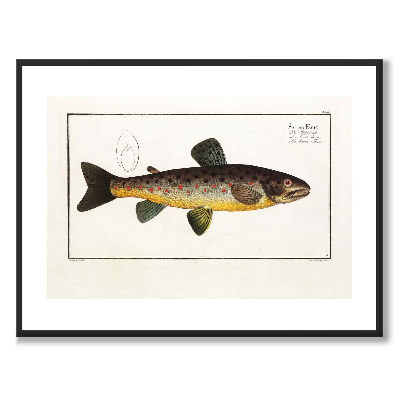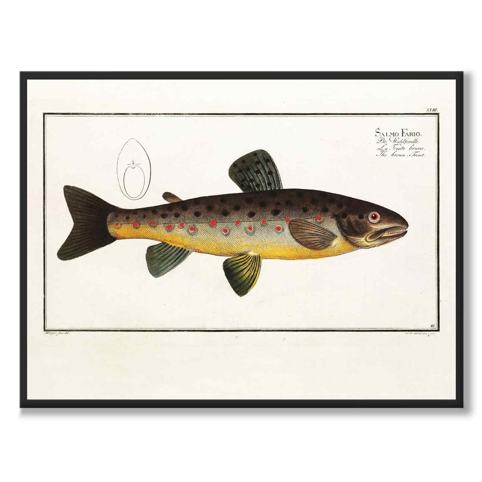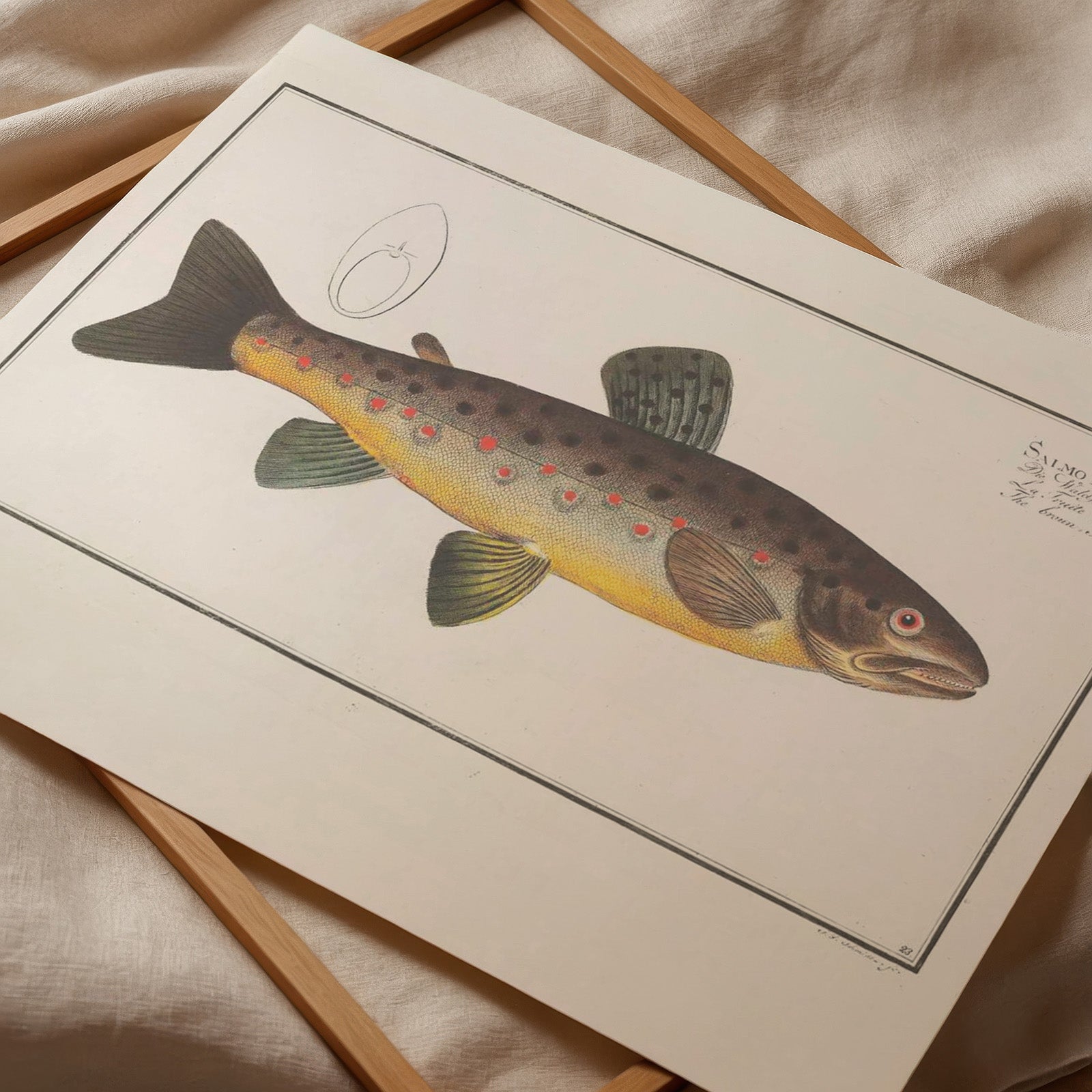 Bloch's first works focused on German fishes and were completely original, based on his own observations – reliable and thorough. His studies of foreign fish, however, were based on the work of others. This meant that Bloch fell victim to many of the misconceptions that seeped through the vast amount of travelogues during the 18th century. His illustrations could therefore on the one hand show an incredibly precise precision, on the other hand a seductive imaginativeness. Each of the hand-colored illustrations is identified in several different languages.