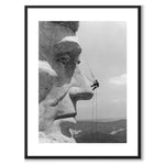 Poster with a unique image of Mount Rushmore In the state of South Dakota. The site is famous for the eighteen meter tall granite sculptures depicting US presidents Abraham Lincoln, George Washington, Thomas Jefferson and Theodore Roosevelt.