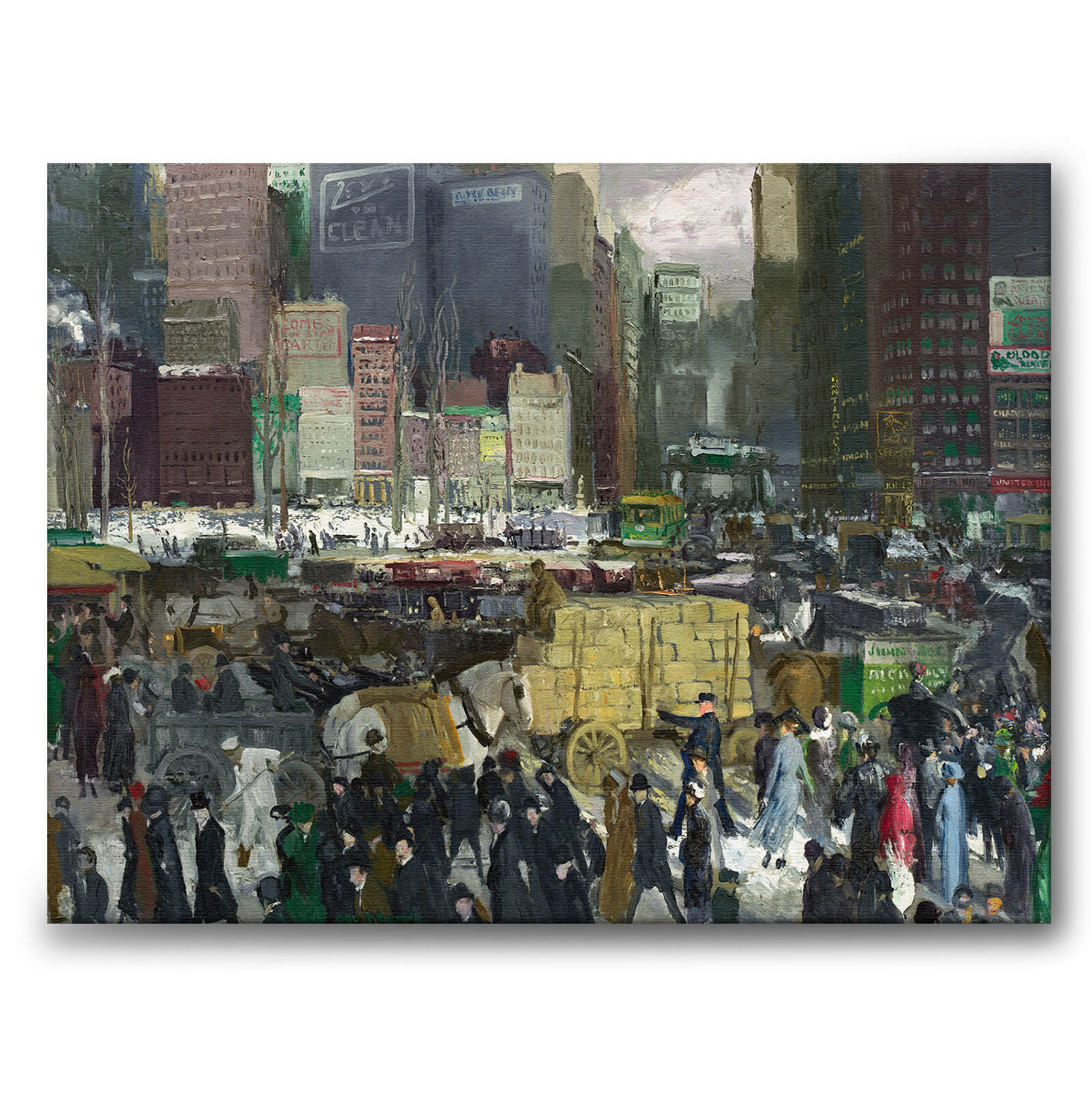 In the picture we see a snowy and populous New York in 1911. From 1907 to 1915, Bellows executed a series of paintings depicting New York in snowy weather, which became experiments in which he developed his strong sense of light and structure. Bellow's urban motifs from New York described the harsh living conditions of the working class, but were also a satire against the upper class.
