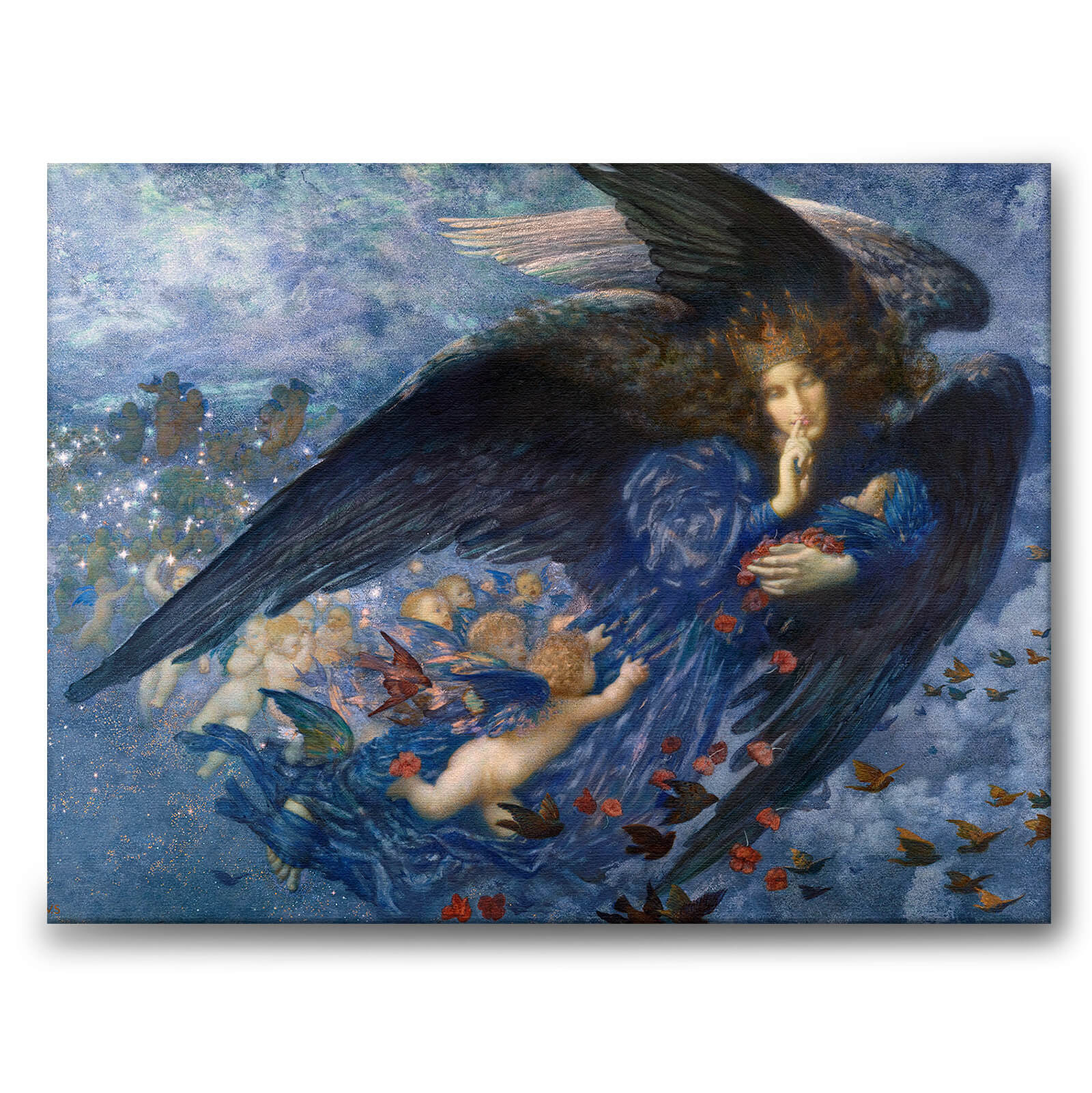 Canvas with the fantastic painting Night with her Train of Stars from 1912. The painting is made of Edward Robert Hughes who was a British painter. Hughes mainly created watercolors, but also some oil paintings.