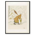 Olle has received a pair of skis as a Christmas present and sets out on his first skiing trip in the forest. The picture shows the meeting with the old woman Tö, a personification of dewy weather, which symbolizes the arrival of spring.