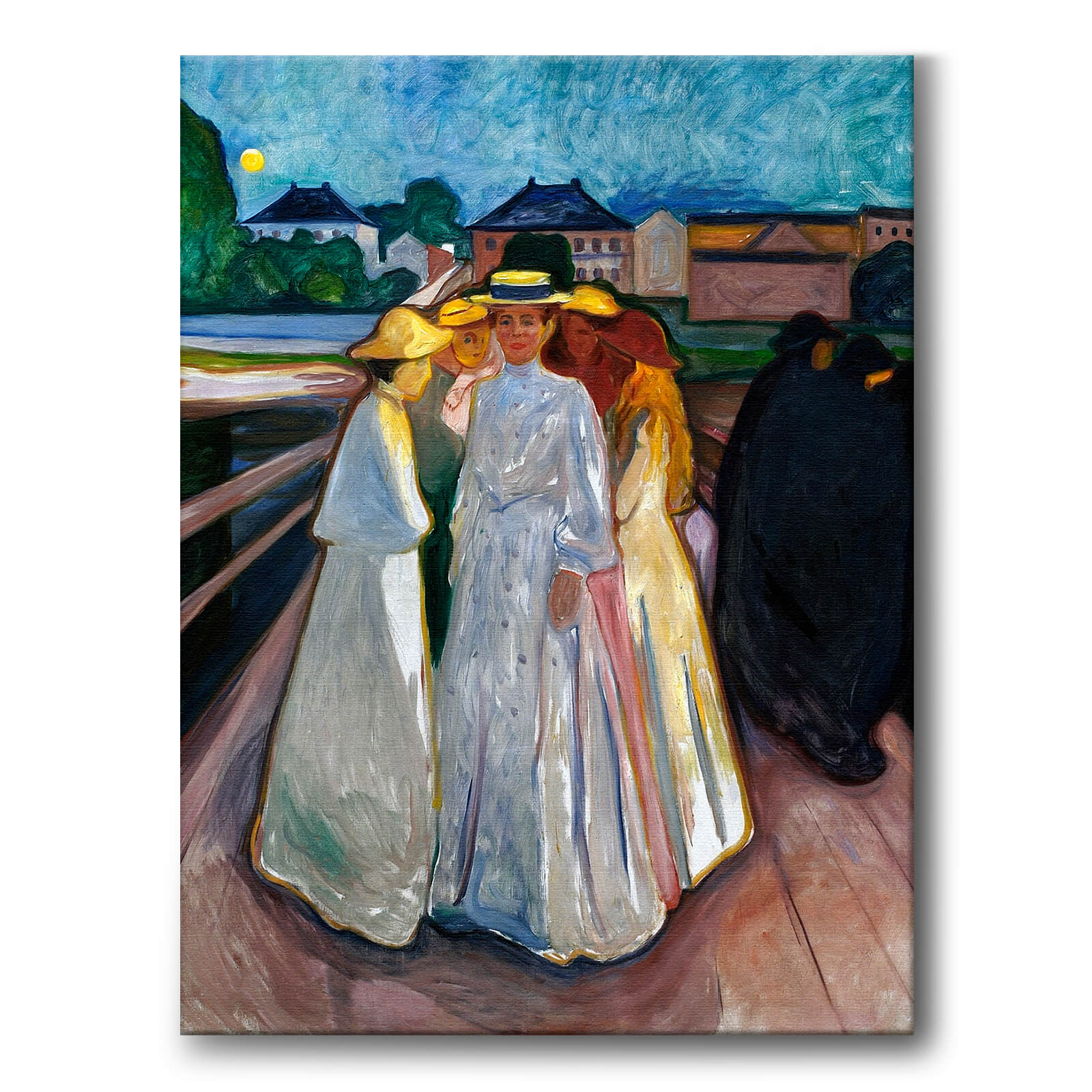 Canvas with the painting On the Bridge by the iconic Norwegian artist Edvard Munch. The work was painted in 1903 and depicts some women on a bridge in Munch's summer town, the small town of Åsgårdstrand in Norway.