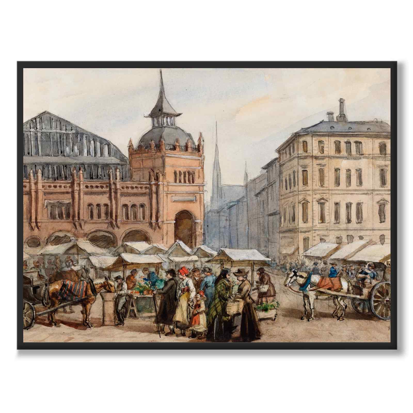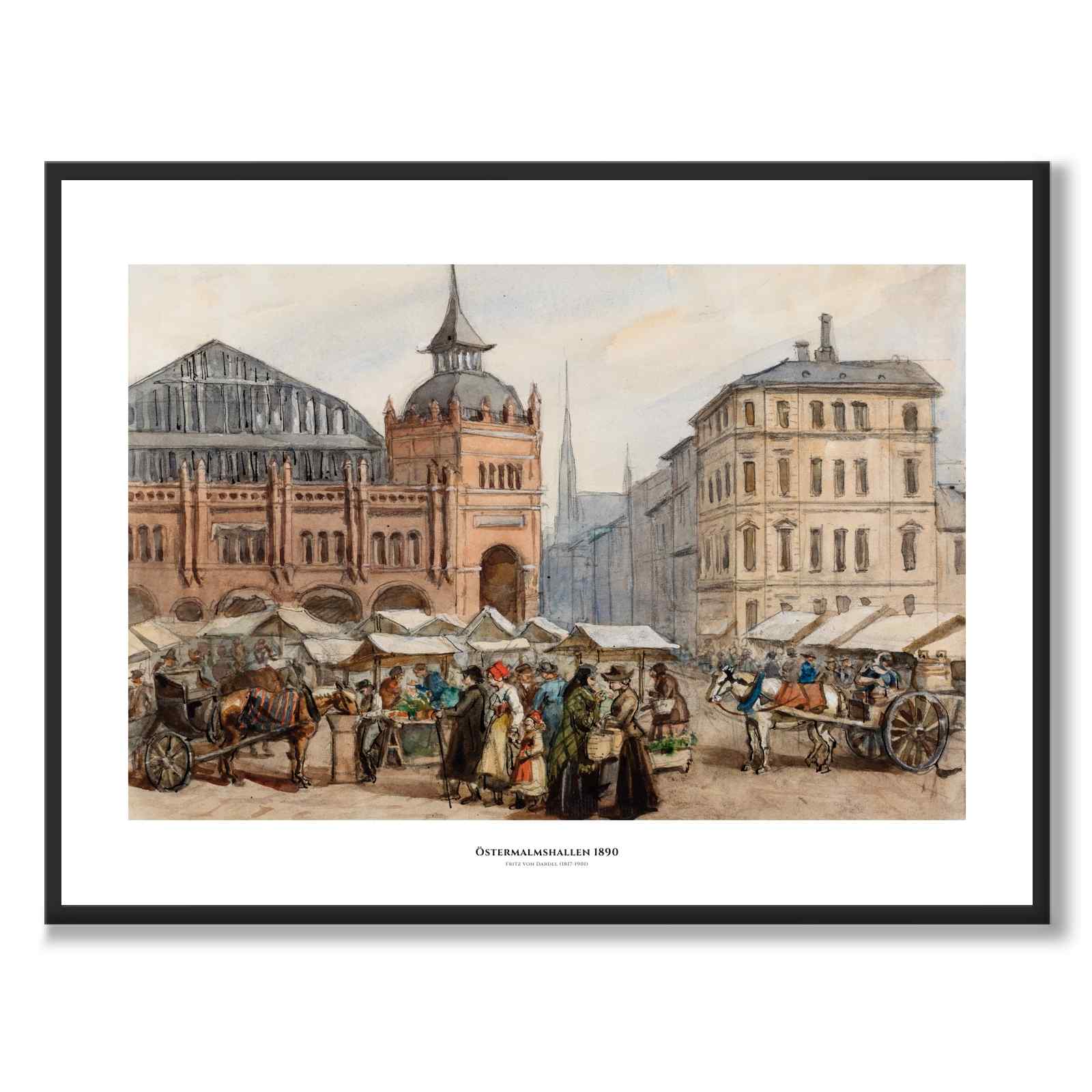 Poster with a beautiful painting from 1890 by Fritz Von Dardel, a Swedish superintendent, military, painter and draftsman. The painting is of Östermalmshallen in Stockholm.