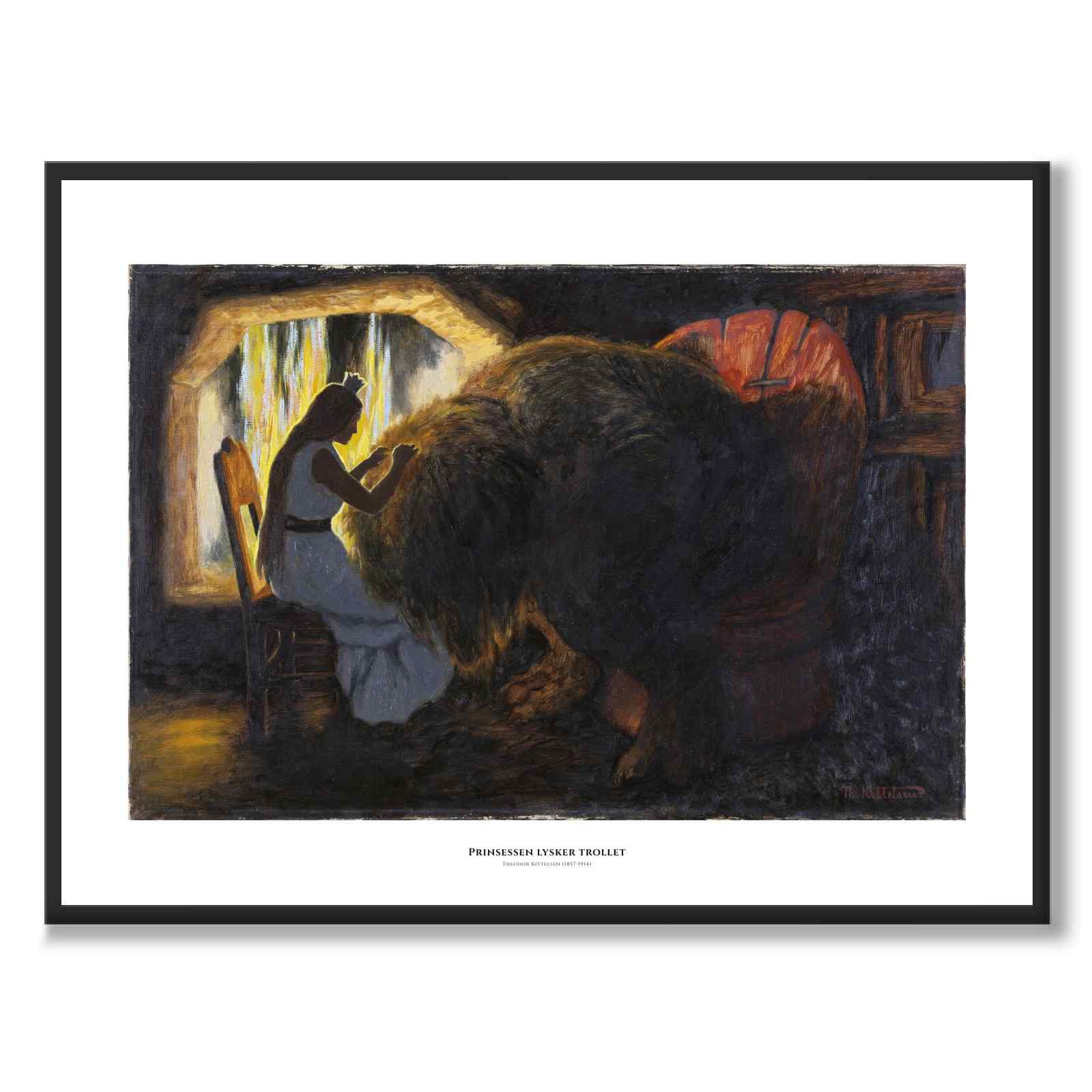 Poster med en målningen "Prinsessen lysker trollet" från 1900 av Theodor Kittelsen som var en norsk konstnär.