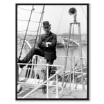The photograph depicts Amundsen on the ship Fram during the preparations for a polar journey. He made expeditions to both the Arctic and Antarctic with Forward
