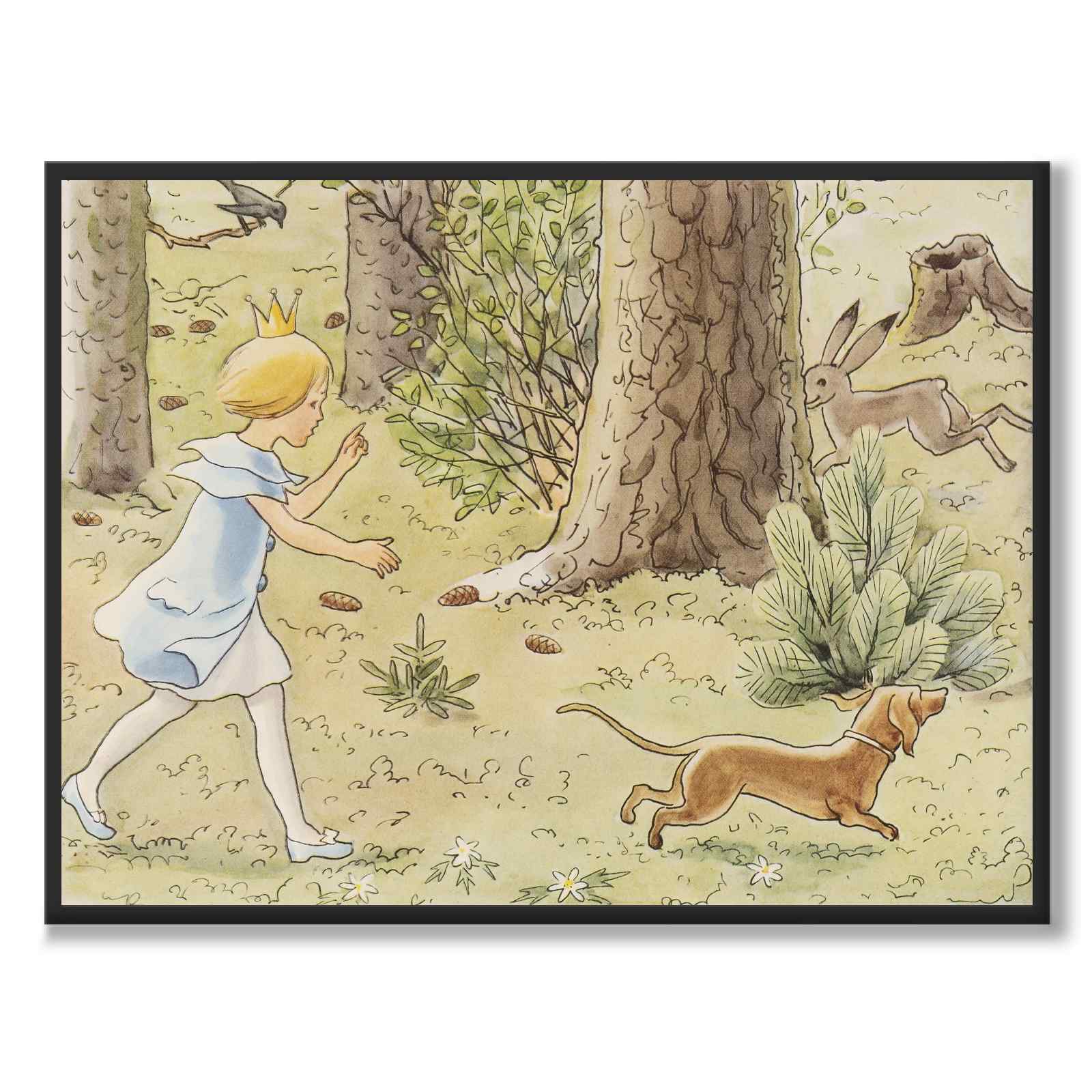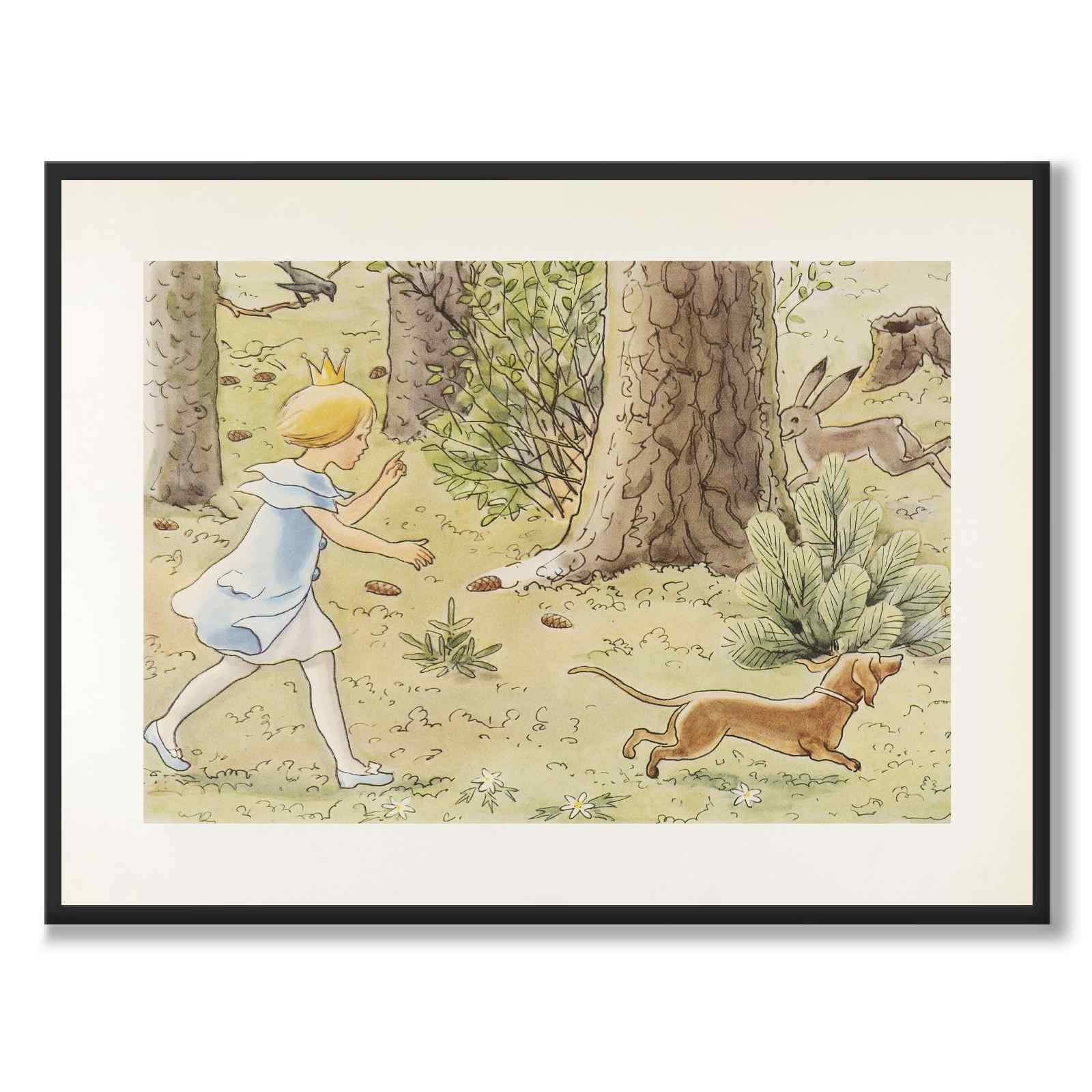 Poster med en vacker illustration från Elsa Beskows barnbok "Sessalätts äventyr" som först publicerades år 1928.