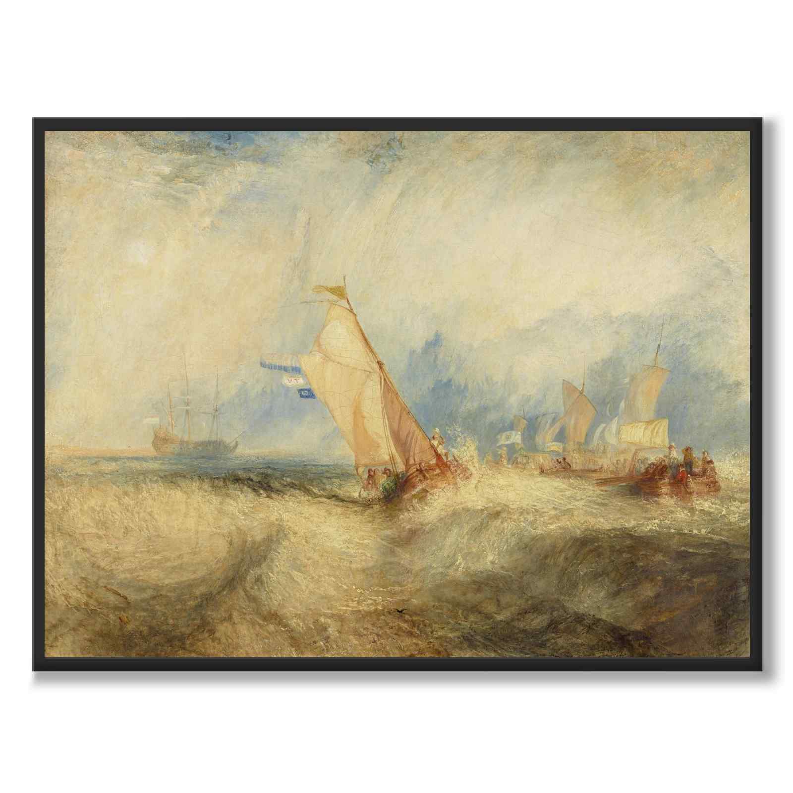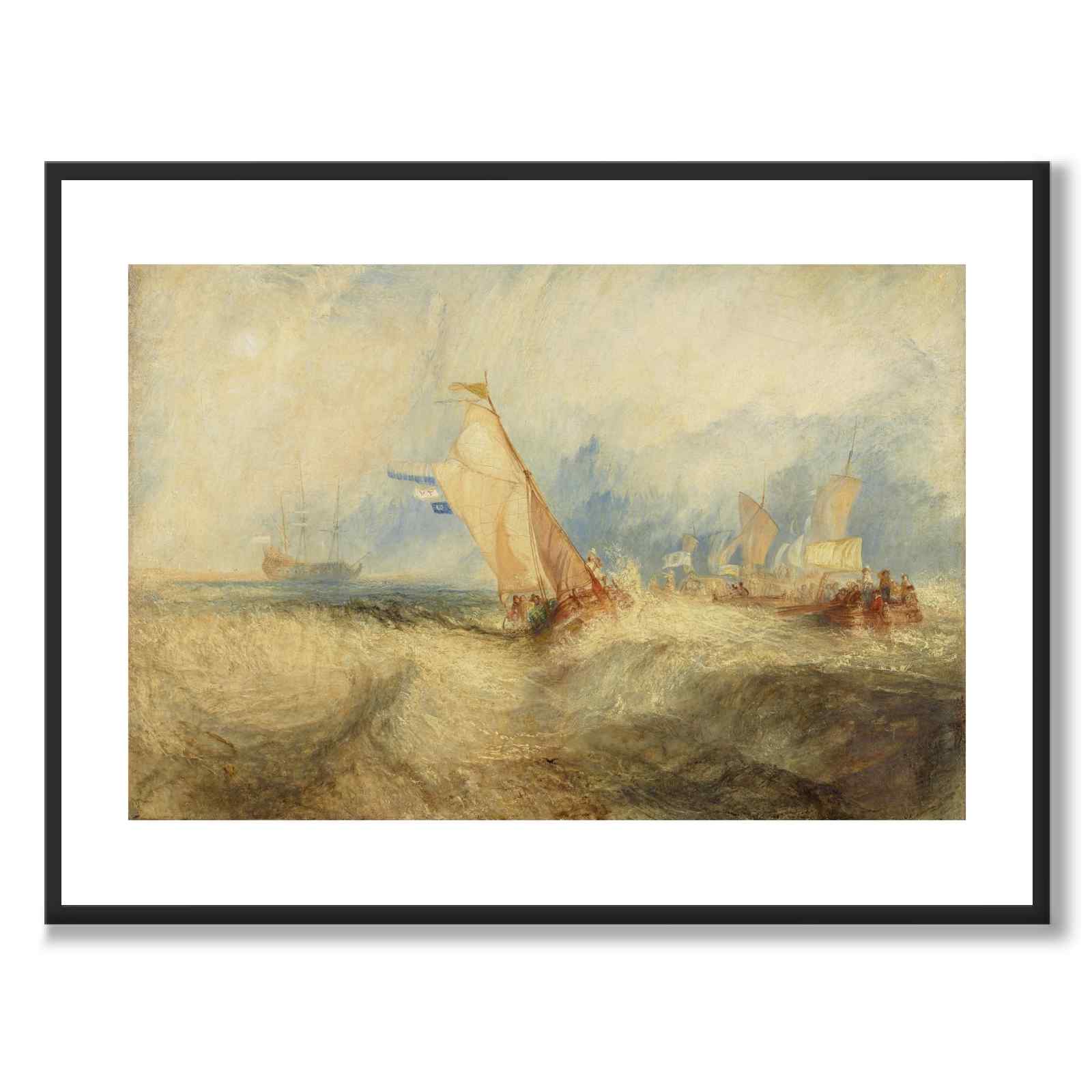 Poster of the painting Ships a Sea created in 1844. In this historic painting, the artist, Joseph Mallord William Turner, expresses the power of nature and the heroism of man seen from the perspective of a romantic painter.