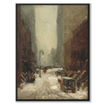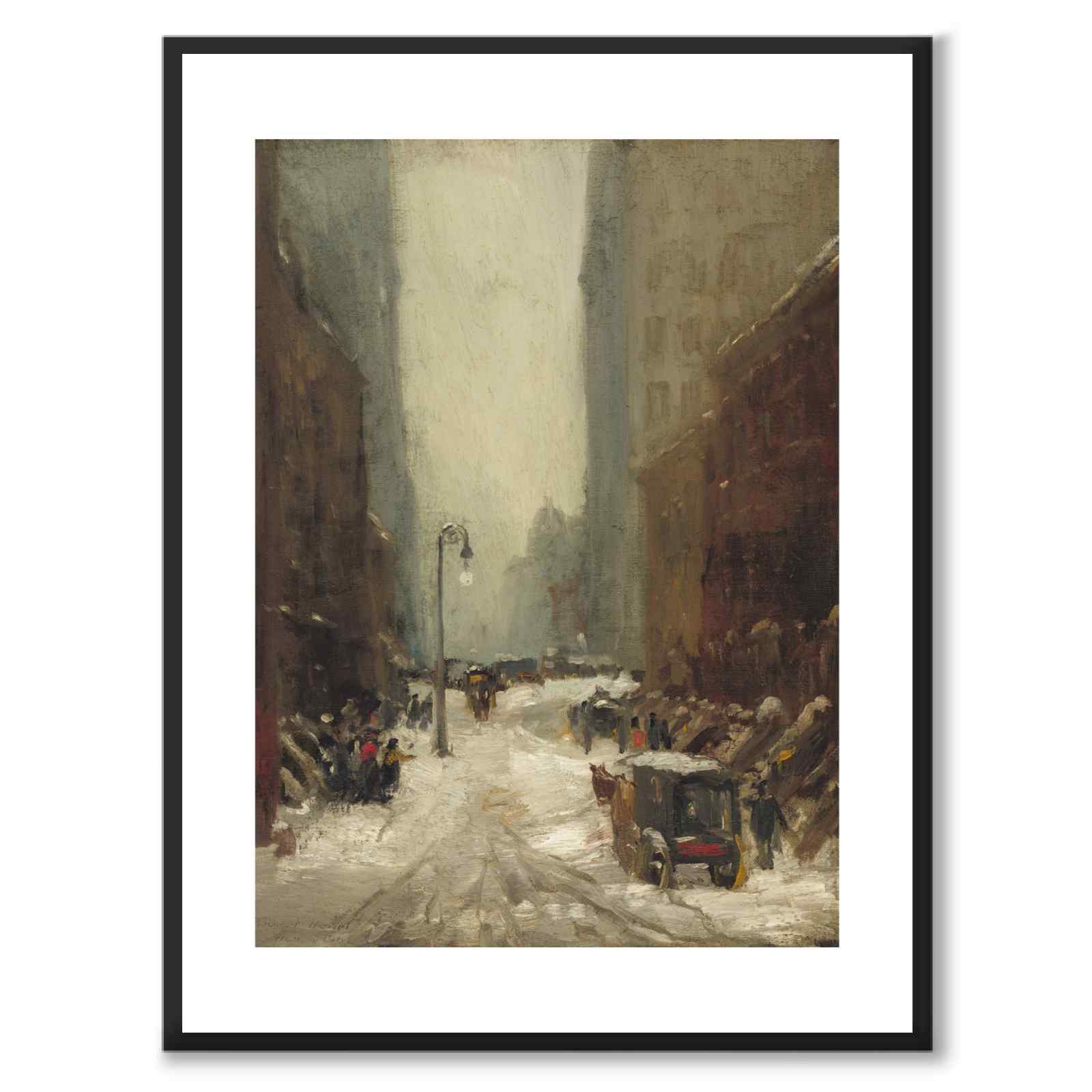 Poster with the fantastic painting Snow in New York created in 1902 by Robert Henry. In the painting we see a beautifully painted snowy landscape with a horse and carriage flanked on each side by tall buildings.