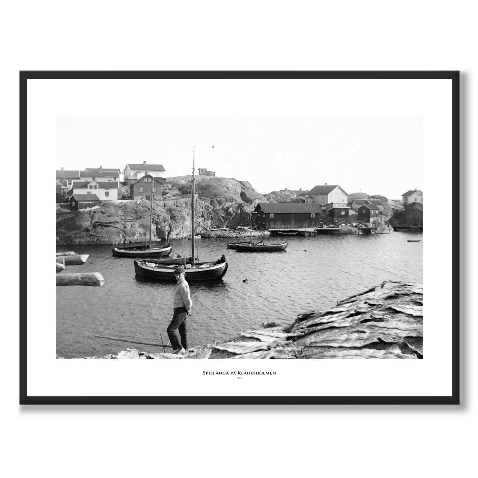 Poster with a photograph of Spillånga on Klädesholmen from 1890. The lovely photo was taken by Hugo Hallgren.