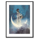 In this fairy-tale painting we see a woman and a child standing on a moon. The woman can be interpreted as Spring , which consequently spreads its stars.